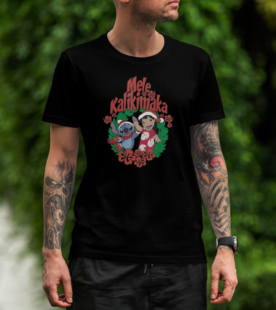 Mele Kalikimaka Lilo And Stitch Christmas Wreath Disney T-Shirt