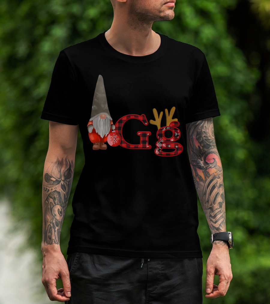 Christmas Gnomes Gg Red Plaid Reindeer Antlers Snowflake T-Shirt