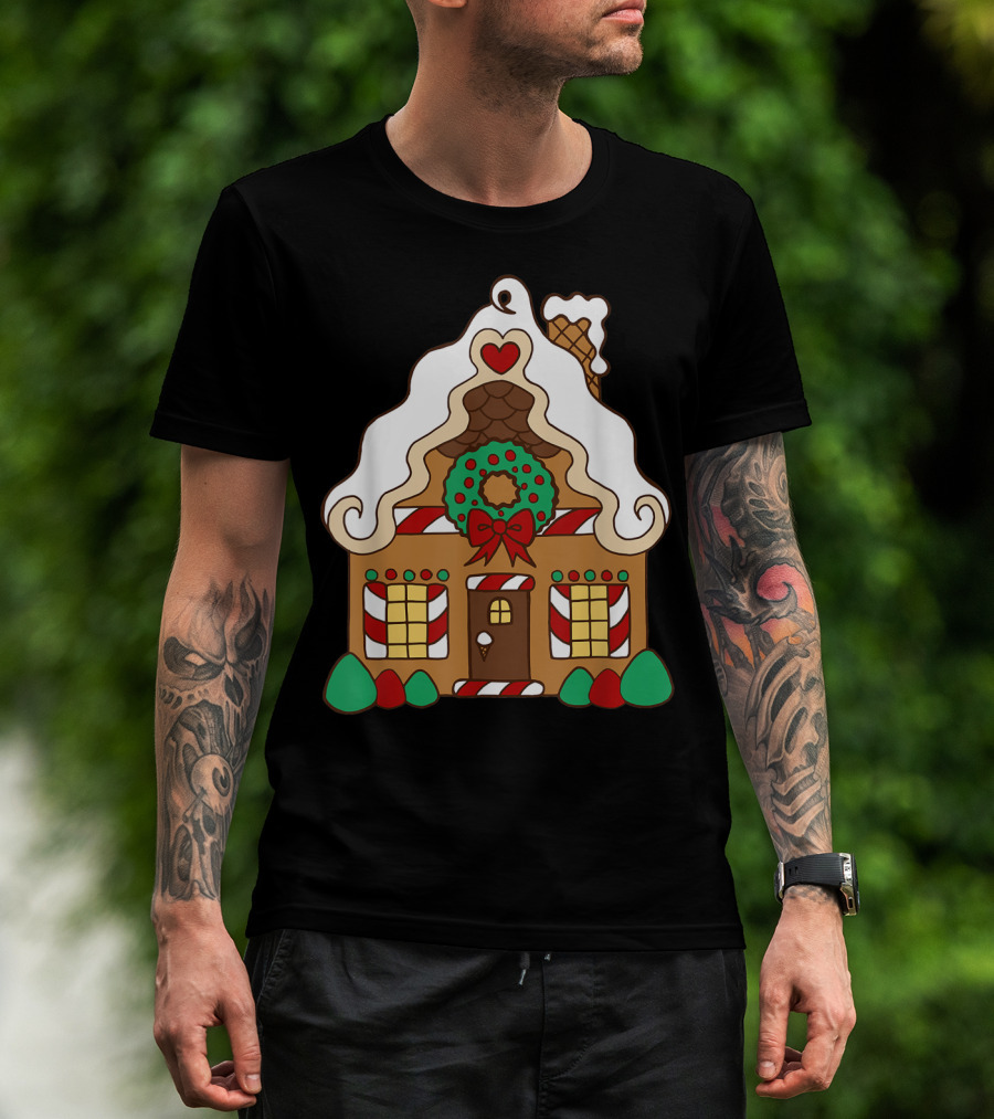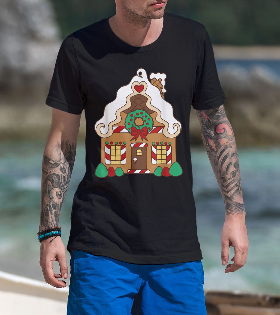 Christmas Gingerbread House With Candy Cane And Wreath T-Shirt