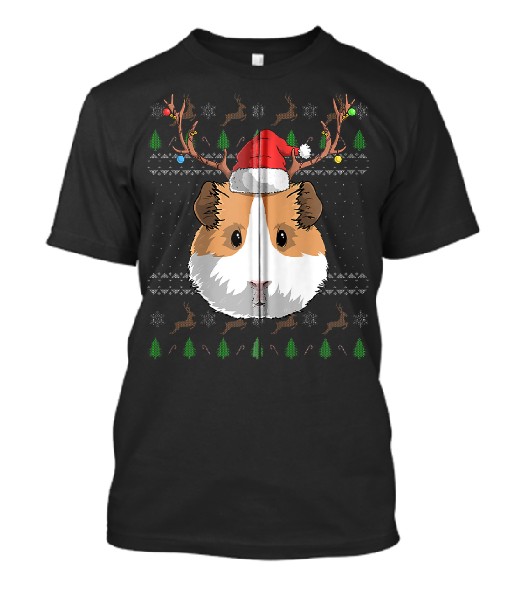 The Guinea Pig Santa Claus Hat Reindeer Antlers Christmas Trees and Snowflakes T-shirt is designed for everyday wear and a consistent fit. Fabric is pre-shrunk ring-spun cotton with durable stitching. See the size chart below for exact measurements.