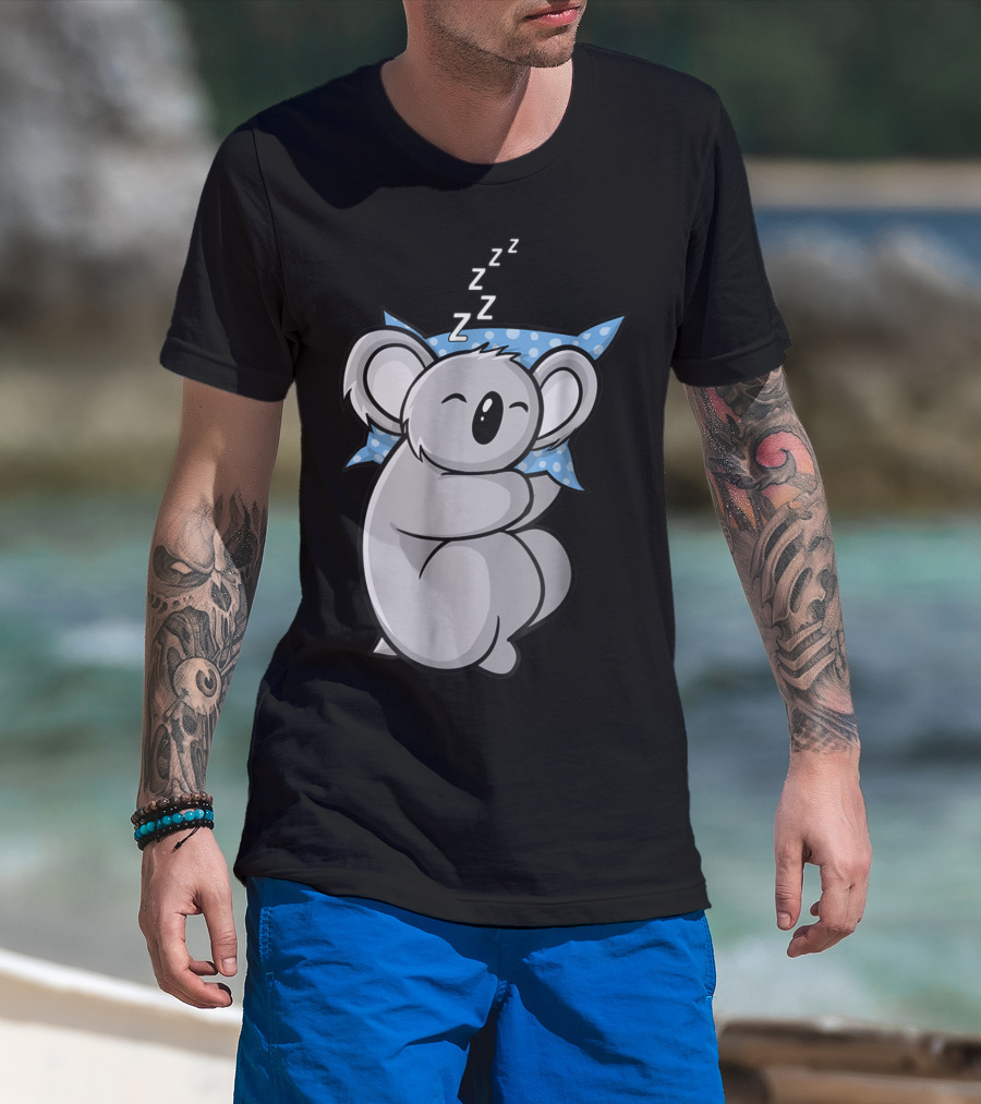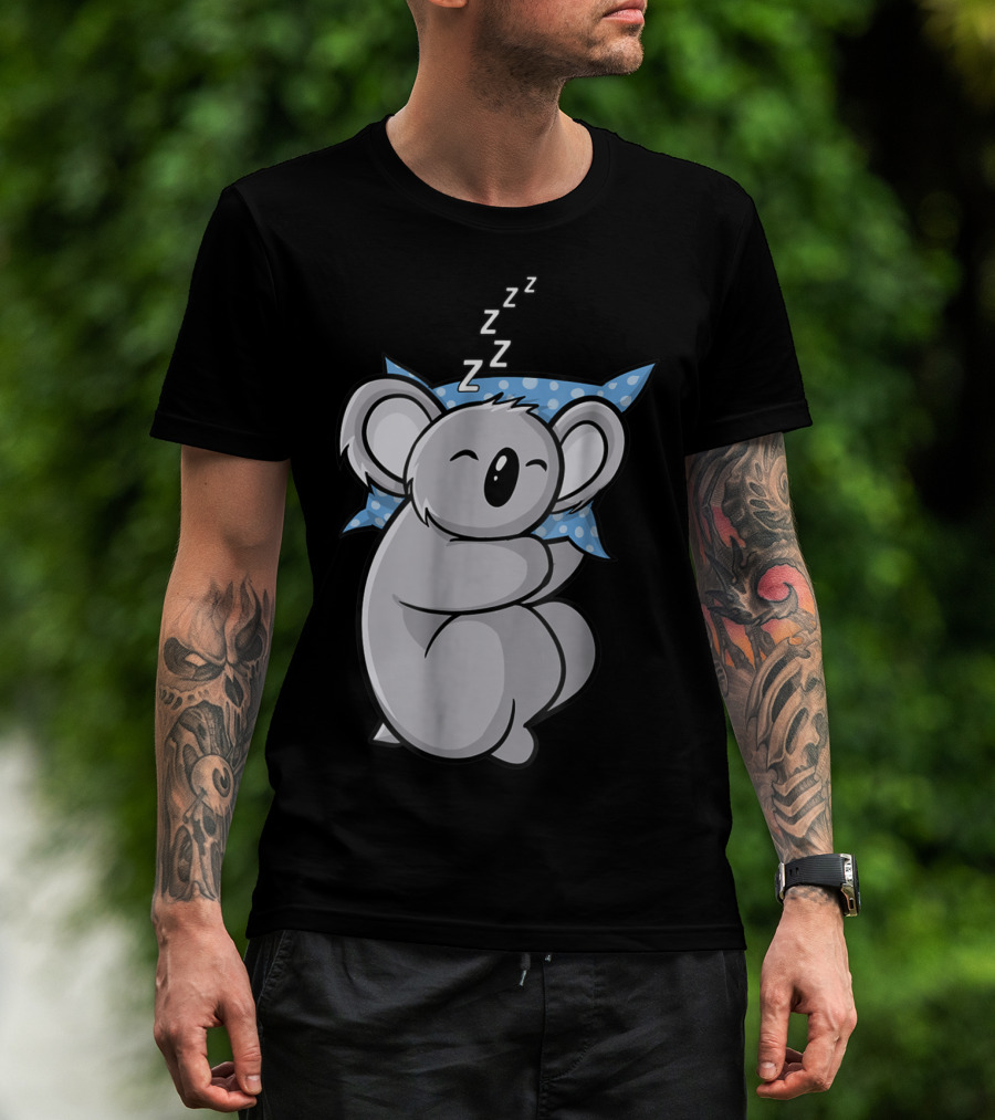 Cute Koala Bear Lazy Sleeping Animal With Blue Polka Dot Pillow T-Shirt