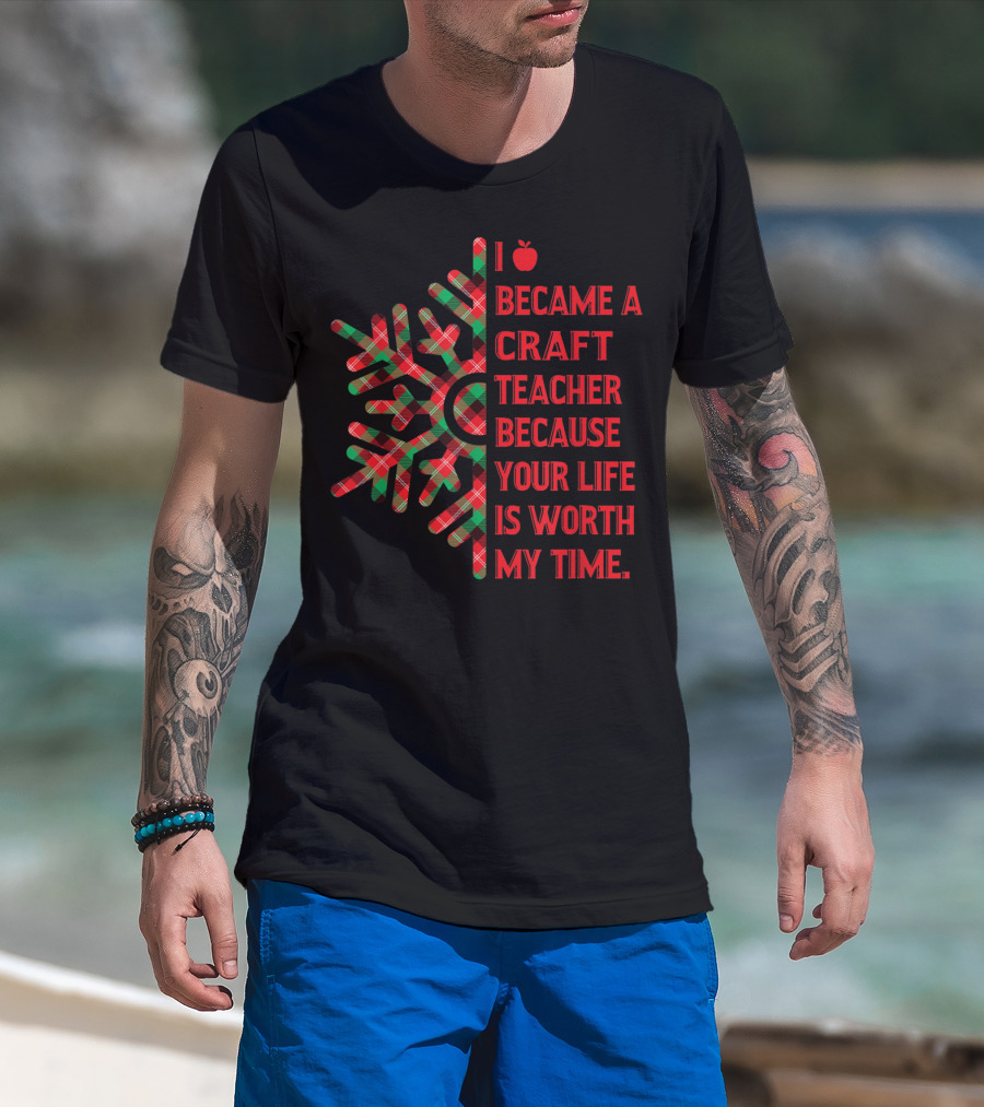 I Became A Craft Teacher Because Your Life Is Worth My Time Buffalo Plaid T-Shirt