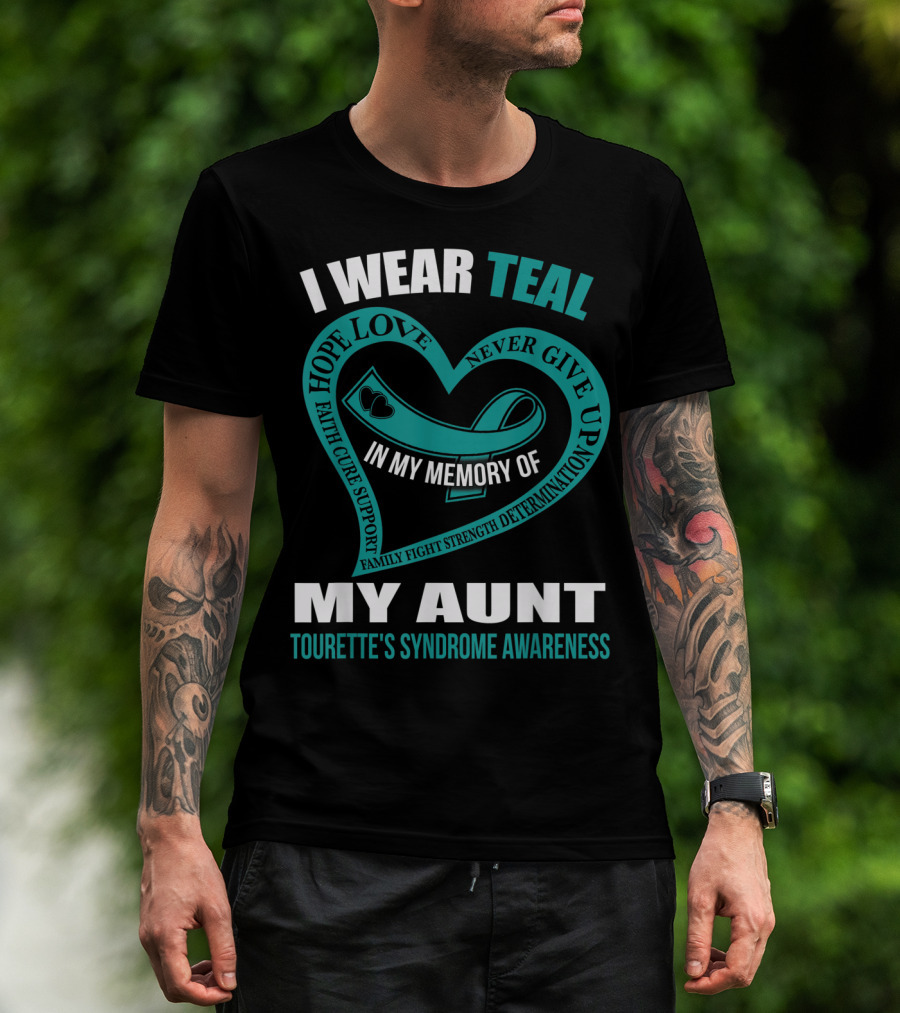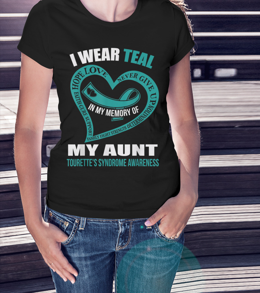 I Wear Teal Hope Love Faith Support In My Memory Of My Aunt Tourette's Syndrome Awareness T-Shirt