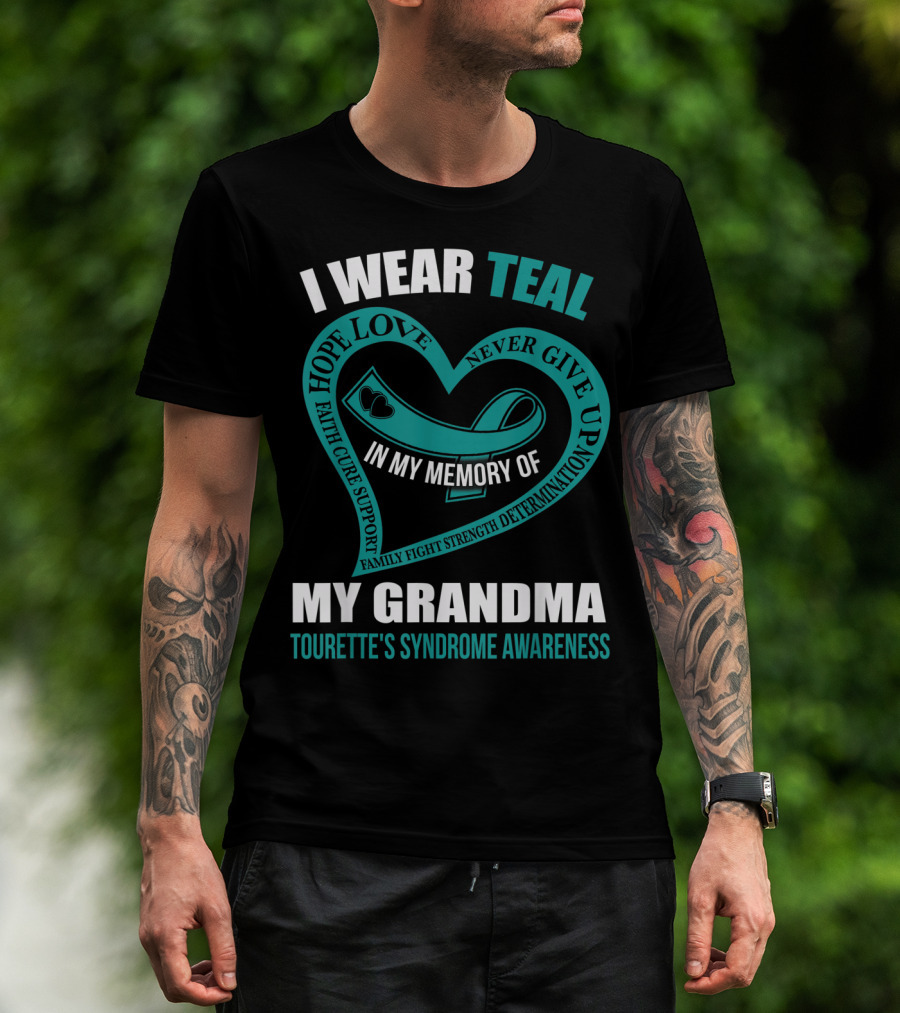 I Wear Teal Hope Love Faith Cure Support Family Fight Strength Determination Never Give Up In My Memory Of My Grandma Tourette's Syndrome Awareness T-Shirt
