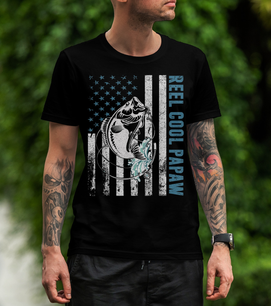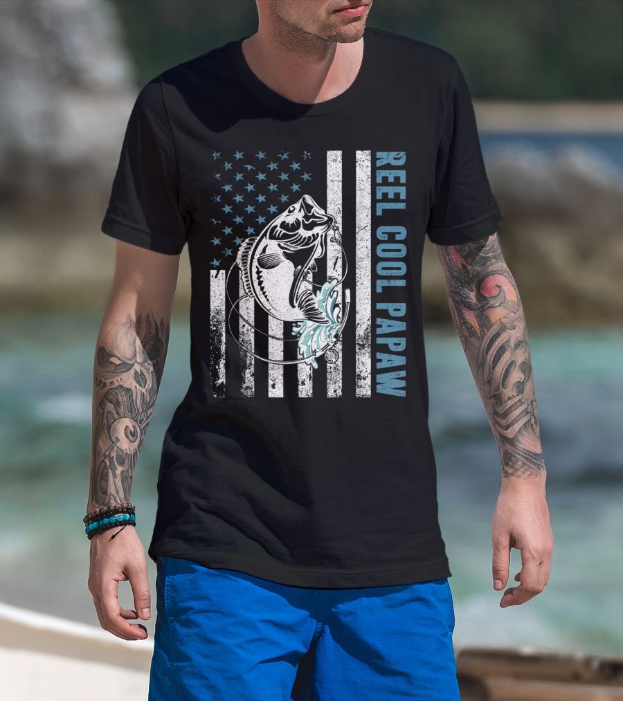 Reel Cool Papaw American Fishing Lovers Patriotic Vintage Bass T-Shirt