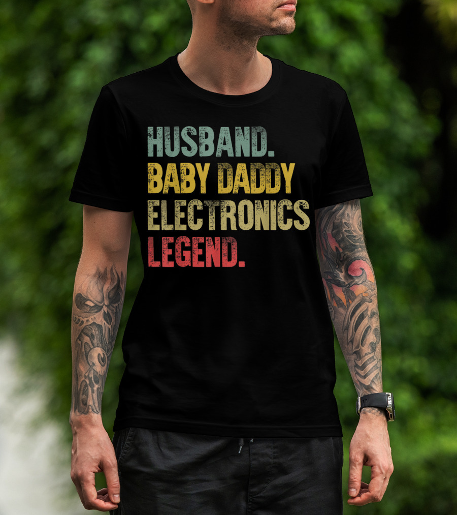 Husband Baby Daddy Electronics Legend Mens Funny Vintage T-Shirt