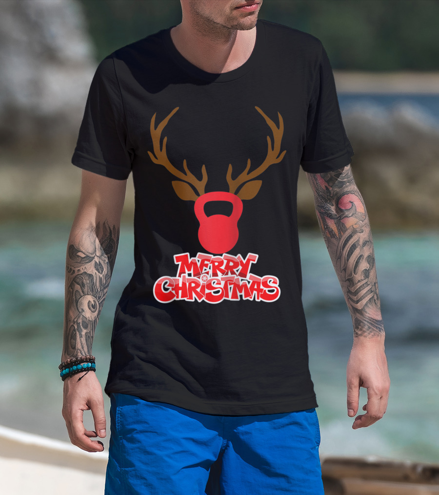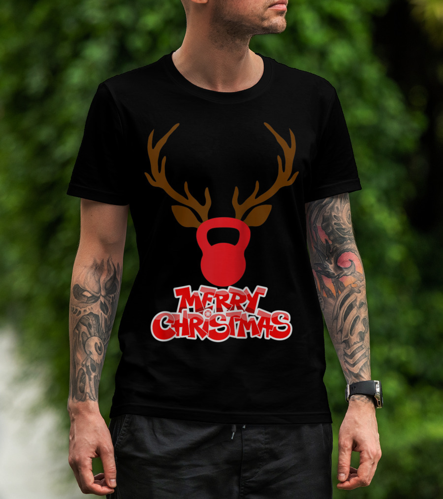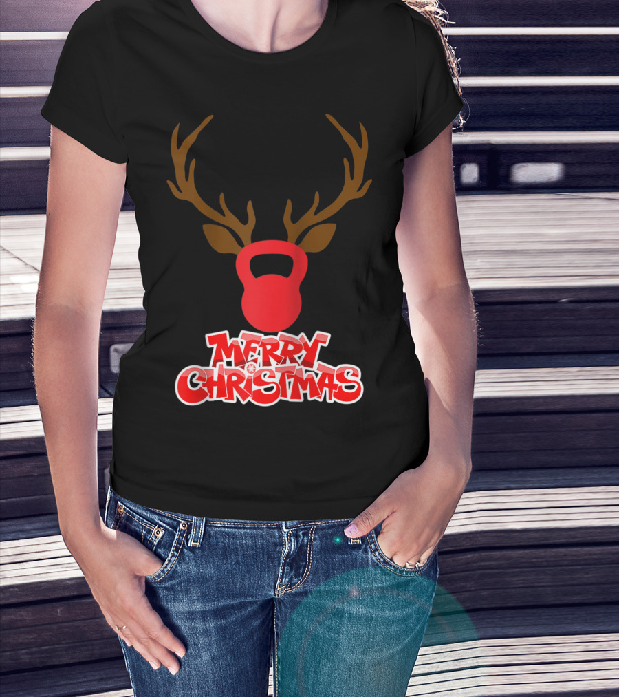 Merry Christmas Antlers Kettlebell T-Shirt