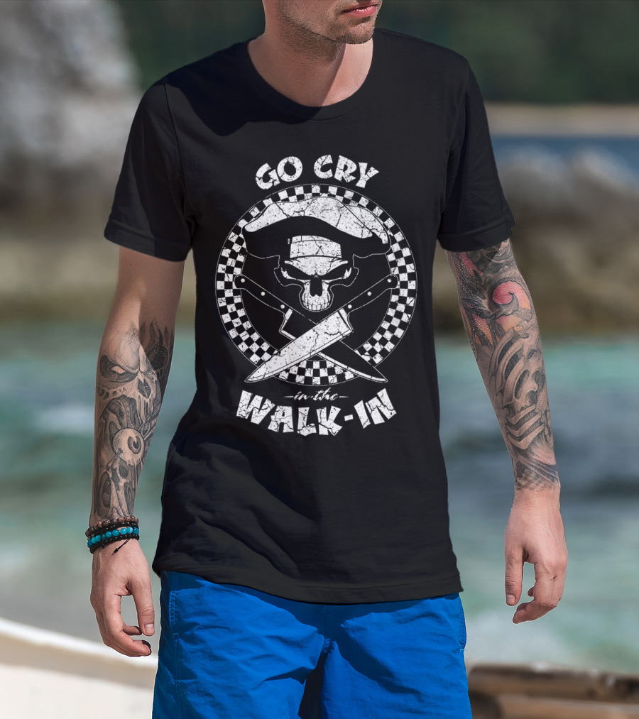 Go Cry In The Walk-In Funny Sarcastic Chef Skull With Knives T-Shirt