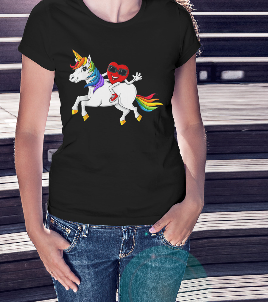 Heart Riding Rainbow Unicorn With Sunglasses And Sneakers T-Shirt