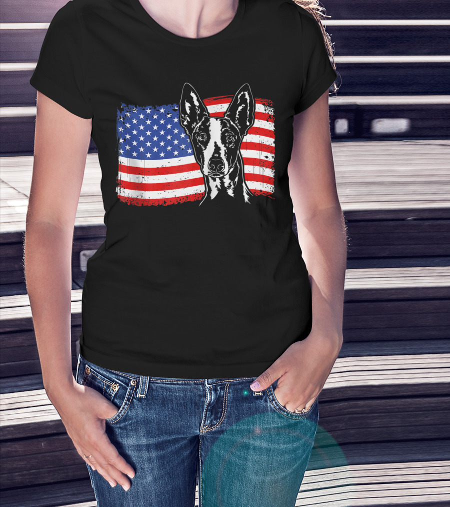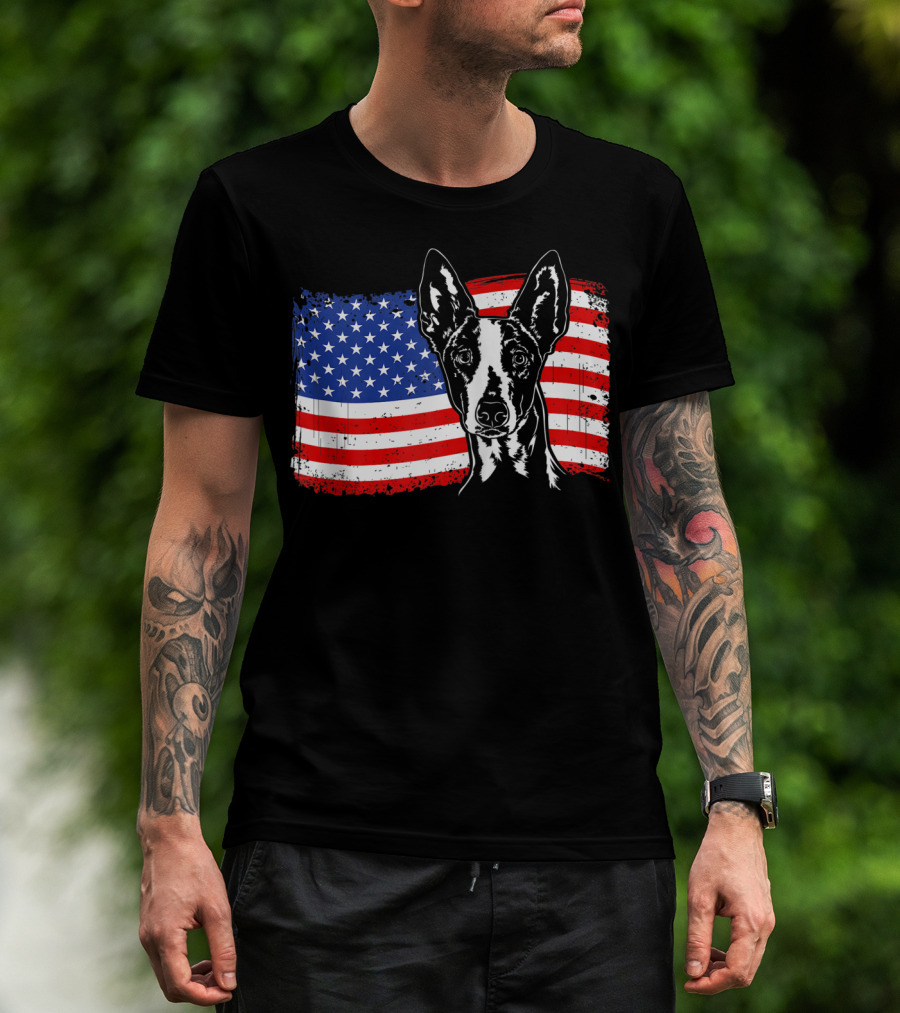 Ibizan Hound With American Flag Patriotic Dog T-Shirt