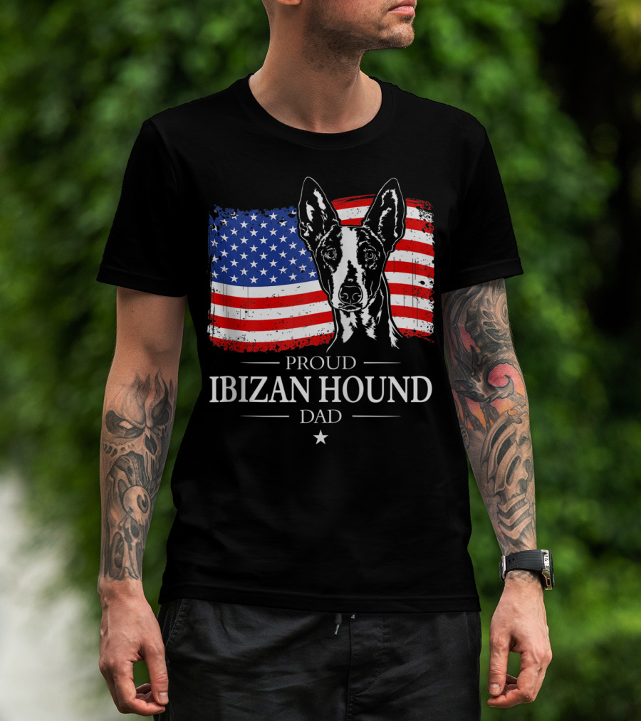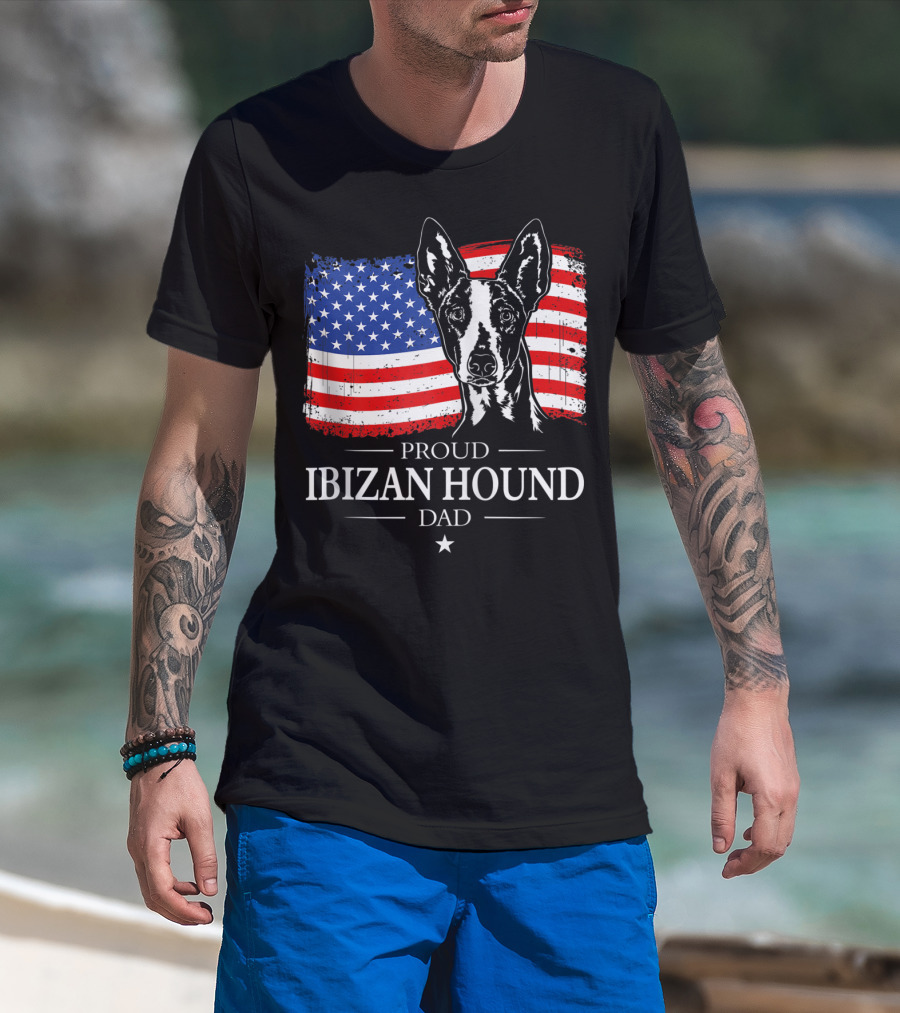 Proud Ibizan Hound Dad American Flag T-Shirt