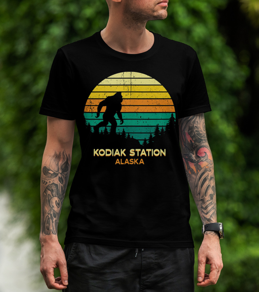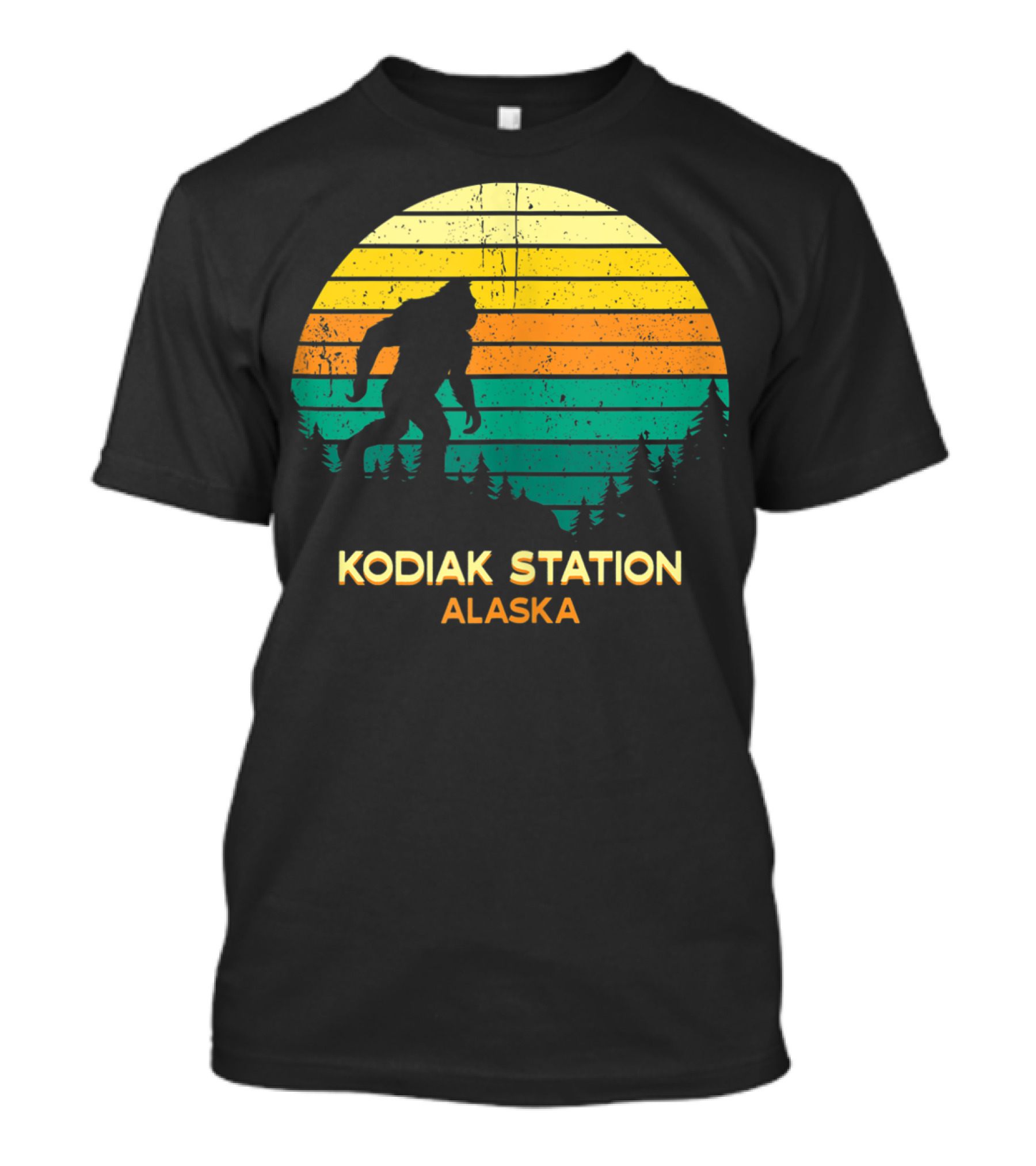 Kodiak Station Alaska Bigfoot Sunset Retro T-Shirt