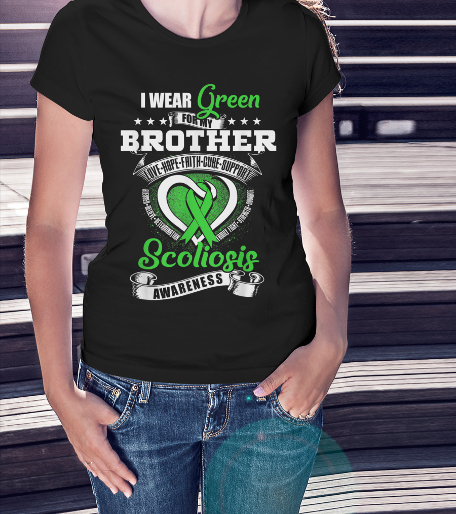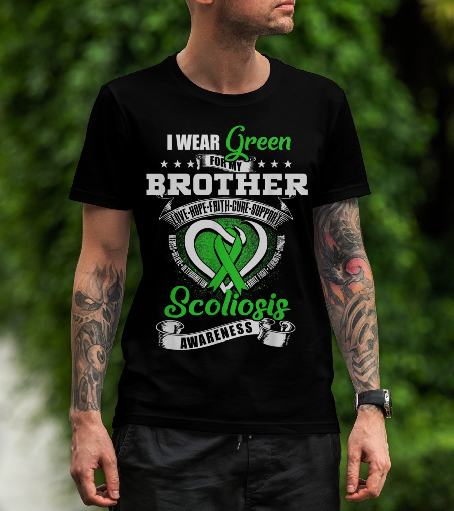 I Wear Green For My Brother Scoliosis Awareness Love Hope Faith Cure Support T-Shirt