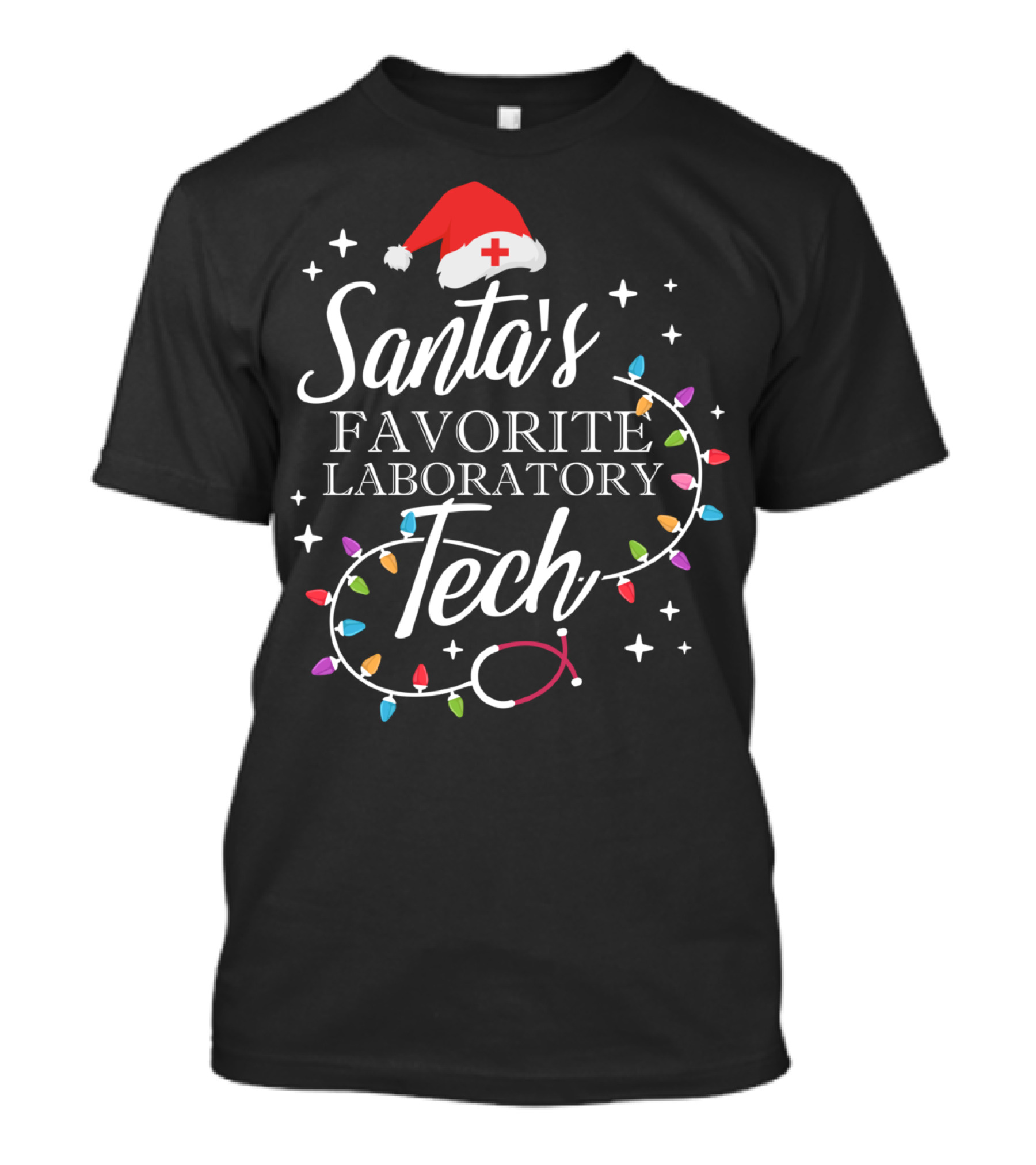 Santa's Favorite Laboratory Tech Holiday Lights Stethoscope T-Shirt