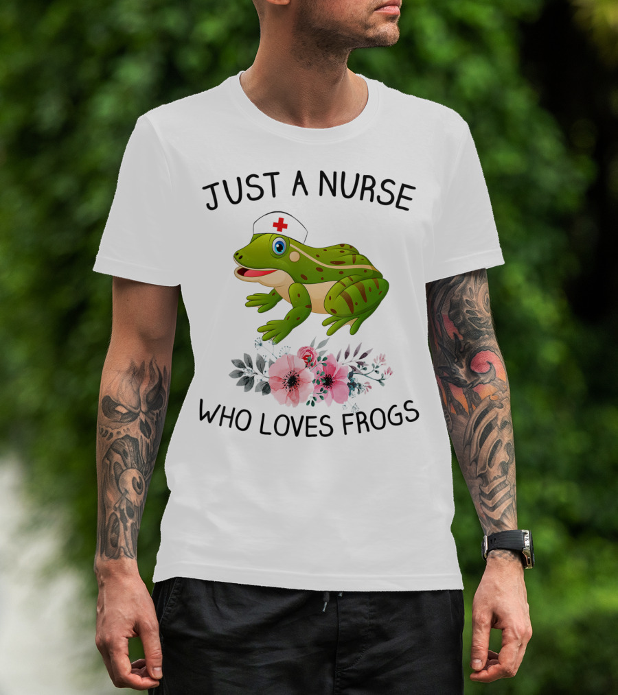 The Just A Nurse Who Loves Frogs Floral Hat T-shirt is designed for everyday wear and a consistent fit. Fabric is pre-shrunk ring-spun cotton with durable stitching. See the size chart below for exact measurements.