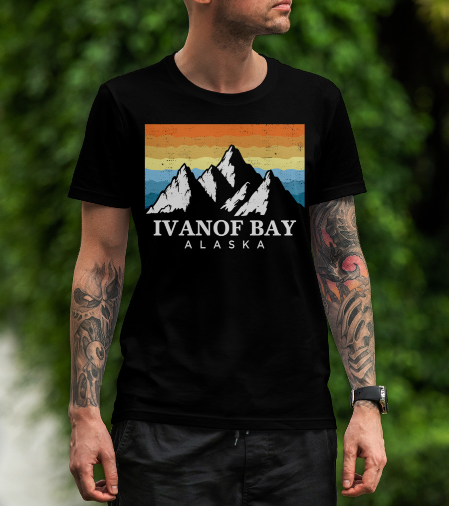 The Ivanof Bay Alaska Vintage Mountain Hiking Retro Sunset T-shirt is designed for everyday wear and a consistent fit. Fabric is pre-shrunk ring-spun cotton with durable stitching. See the size chart below for exact measurements.