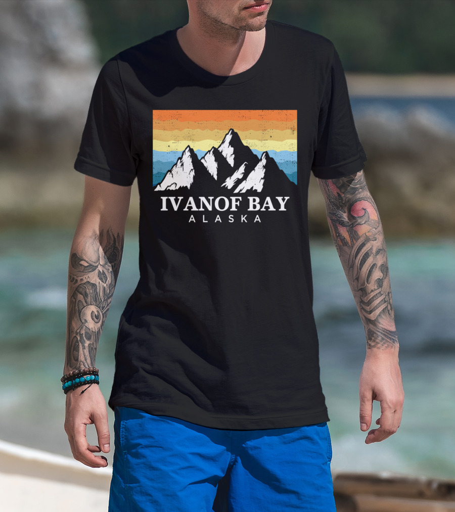 Ivanof Bay Alaska Vintage Mountain Hiking Retro Sunset T-Shirt