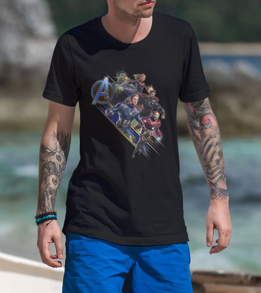 Avengers Endgame Heroes Assemble Action Pose With Iconic A T-Shirt