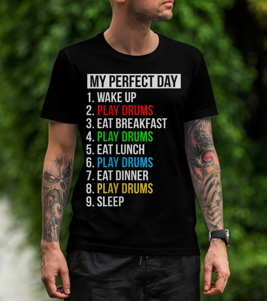 My Perfect Day: Wake Up Play Drums Eat Breakfast Play Drums Eat Lunch Play Drums Eat Dinner Play Drums Sleep T-Shirt