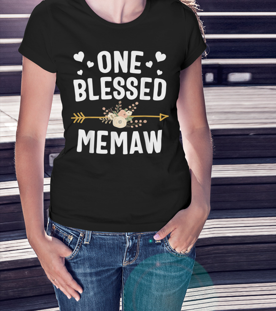 ONE BLESSED MEMAW Heart Arrow Flower T-Shirt