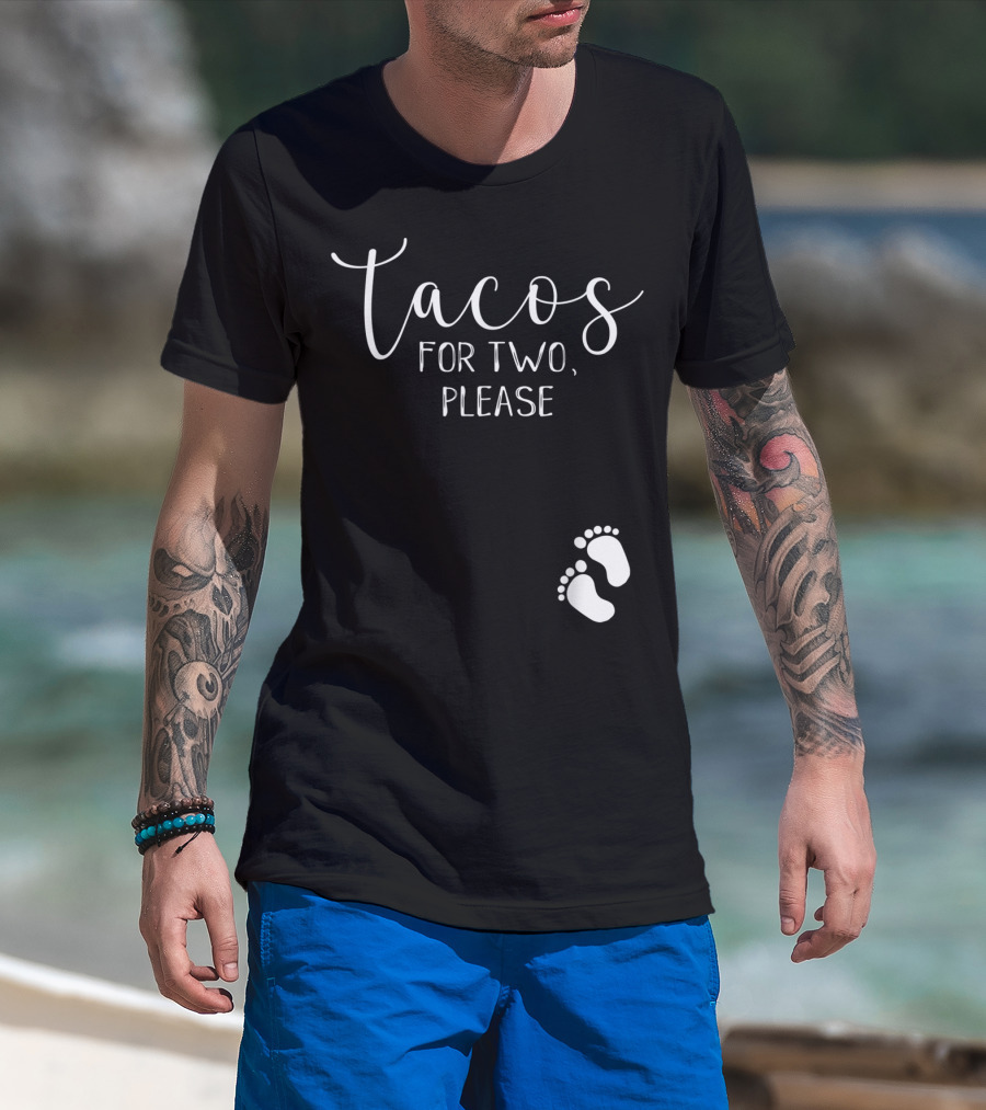 Tacos For Two, Please Pregnancy Announcement With Baby Footprints T-Shirt