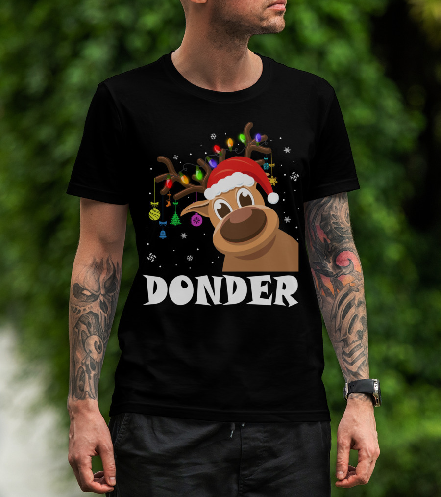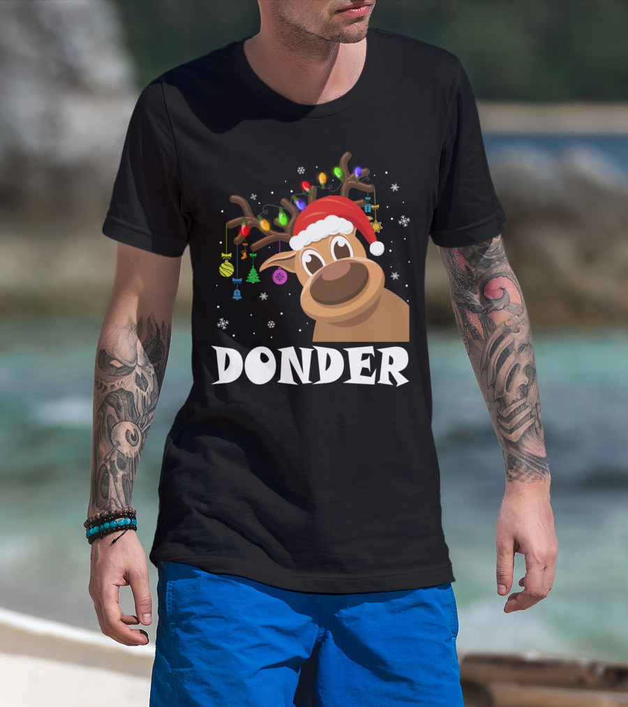 Santa Reindeer Donder Xmas Lights And Ornaments T-Shirt