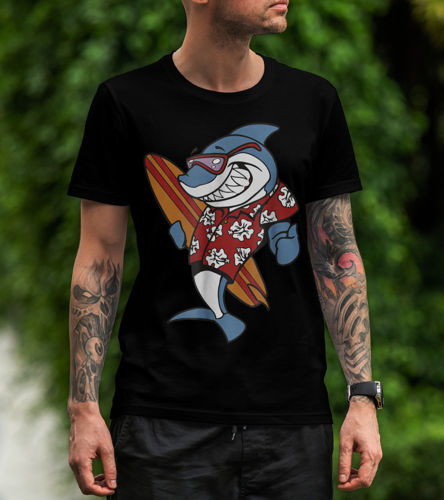 The Shark Surf Hawaiian Surfing T-shirt is designed for everyday wear and a consistent fit. Fabric is pre-shrunk ring-spun cotton with durable stitching. See the size chart below for exact measurements.