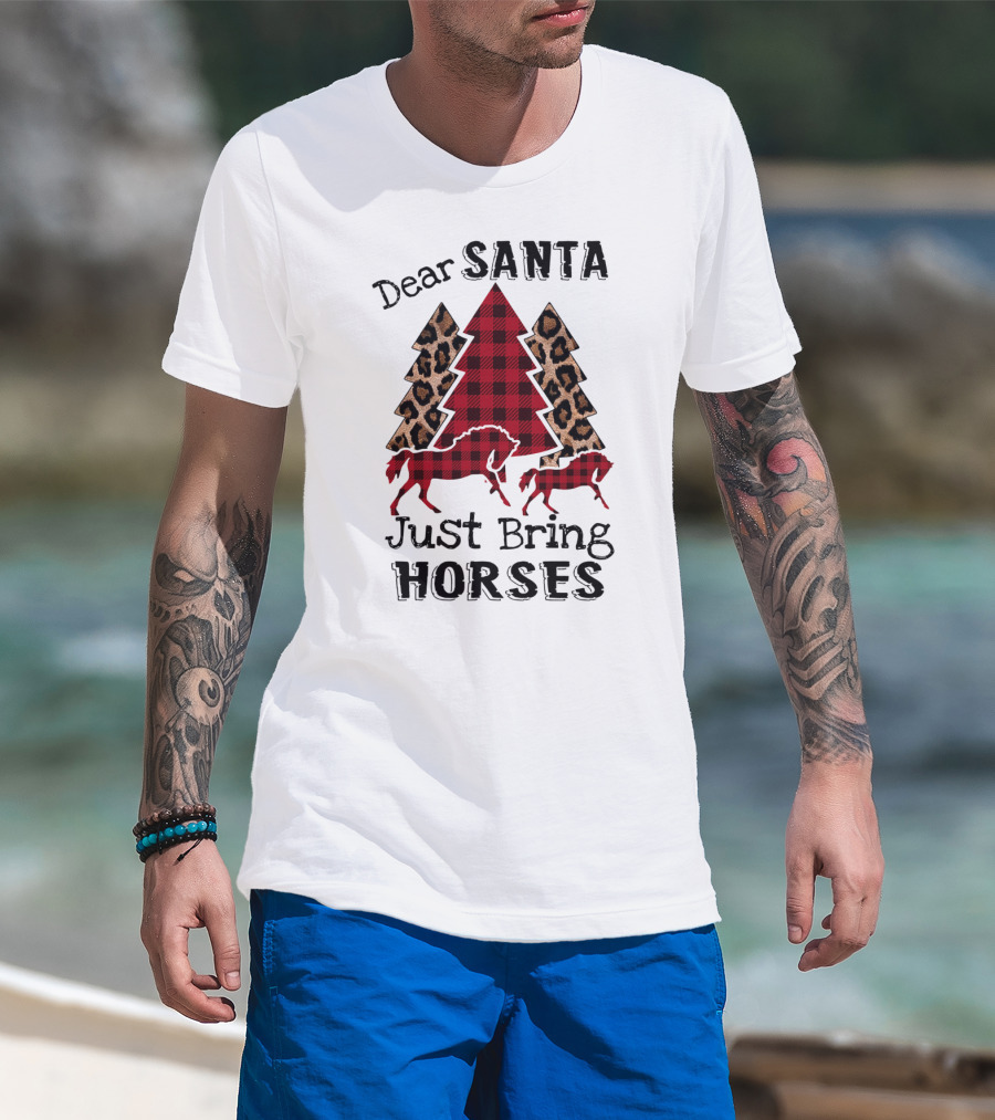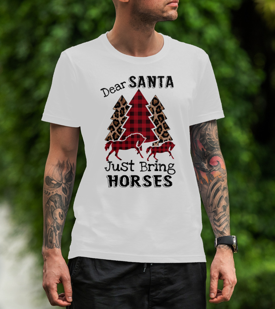 Dear Santa Just Bring Horses Plaid And Leopard Print Christmas Tree With Horse T-Shirt