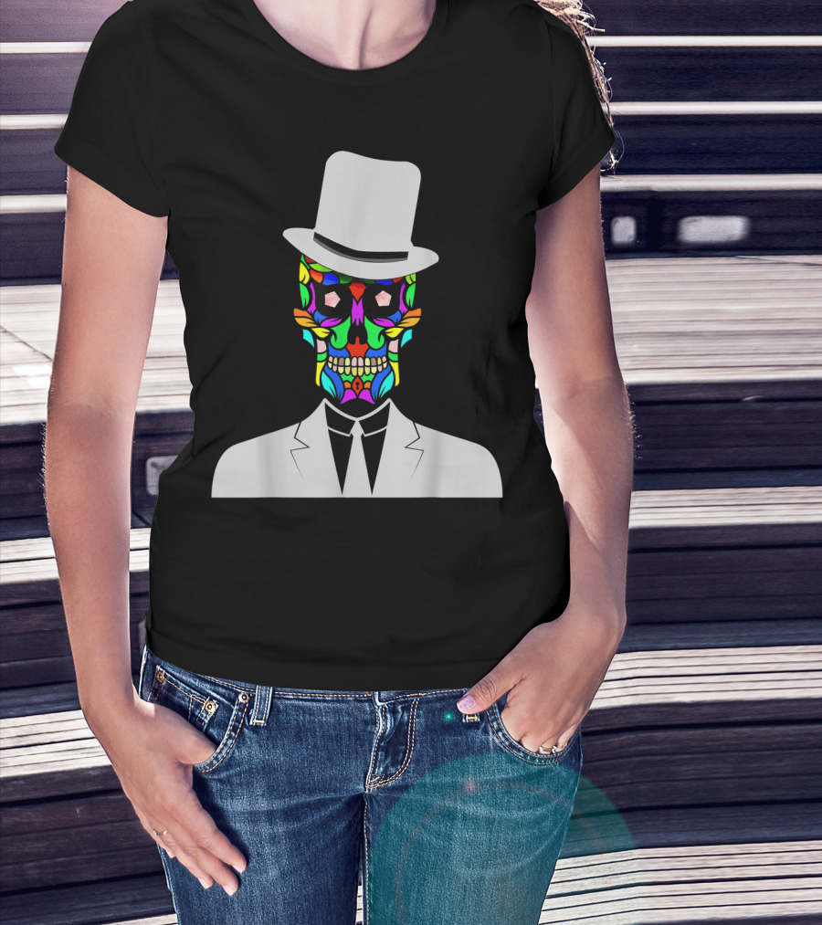 Sugar Skull Baron Samedi Voodoo Colorful Mask In Suit And Top Hat T-Shirt