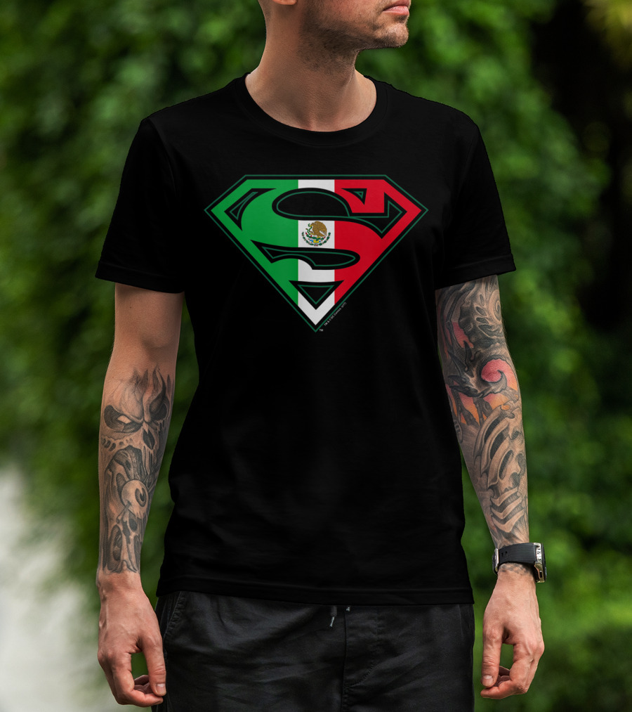 The Superman Mexican Flag Emblem T-shirt is designed for everyday wear and a consistent fit. Fabric is pre-shrunk ring-spun cotton with durable stitching. See the size chart below for exact measurements.