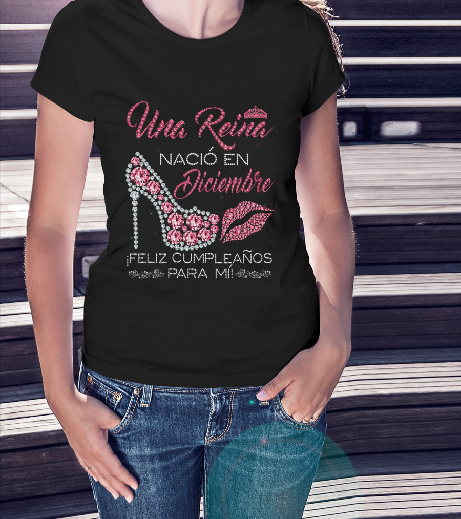 Una Reina Nacio En Diciembre Feliz Cumpleanos Para Mi Tacón Labios Corona T-Shirt