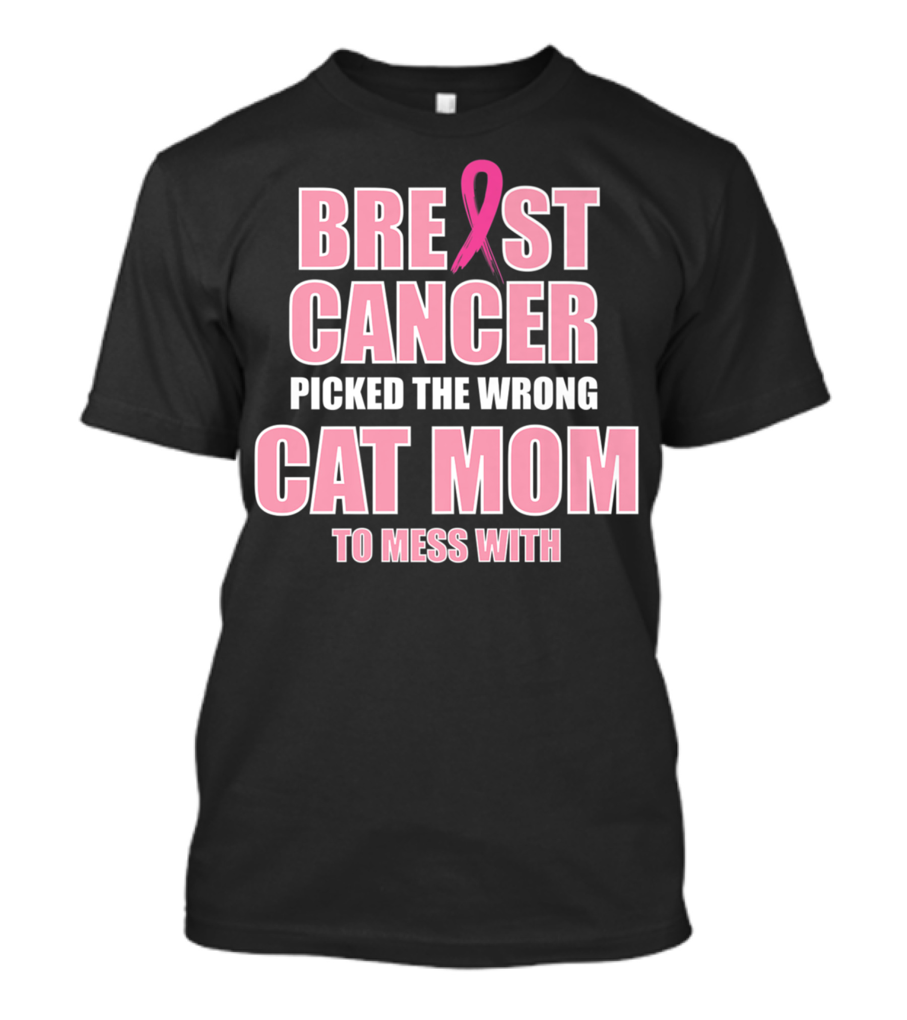 The Breast Cancer Picked the Wrong Cat Mom to Mess T-shirt is designed for everyday wear and a consistent fit. Fabric is pre-shrunk ring-spun cotton with durable stitching. See the size chart below for exact measurements.