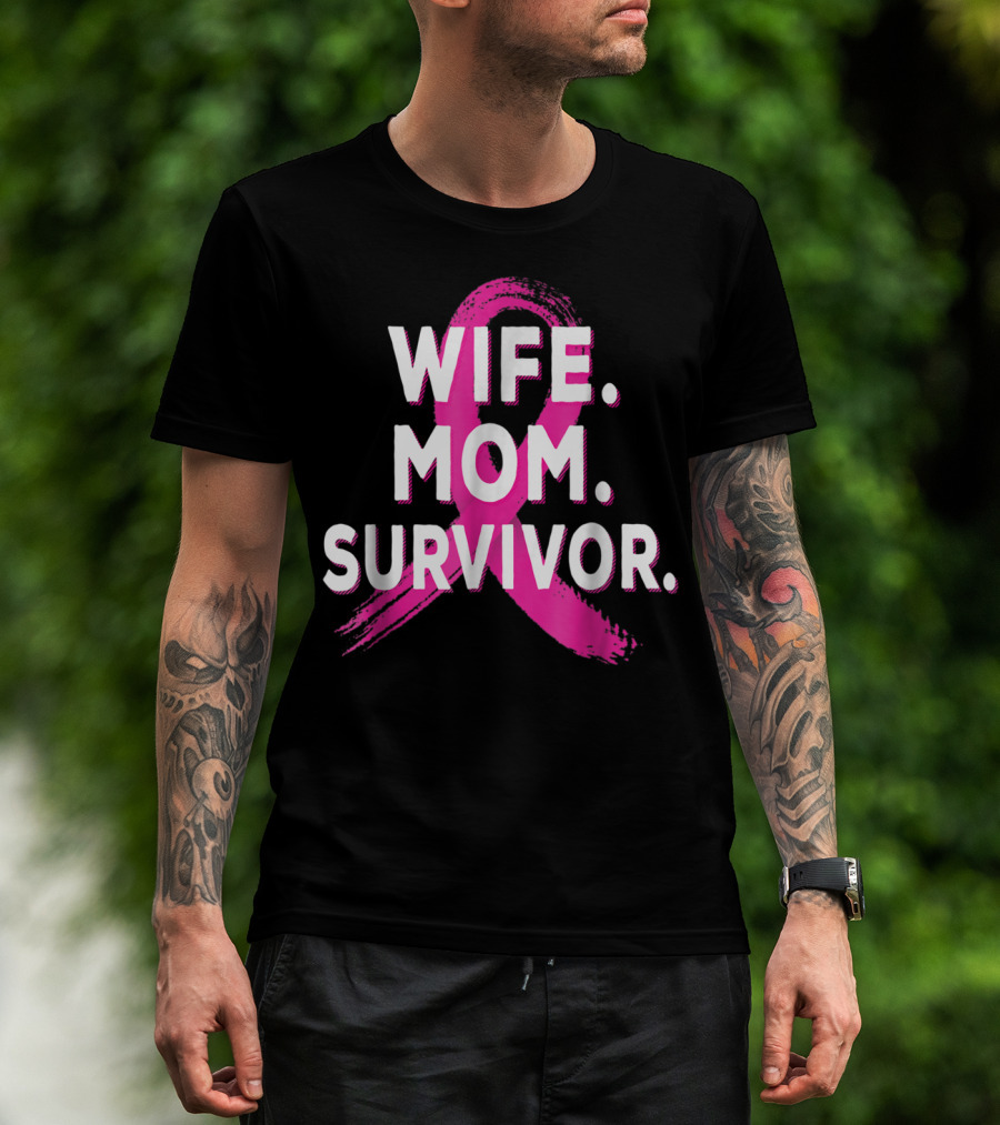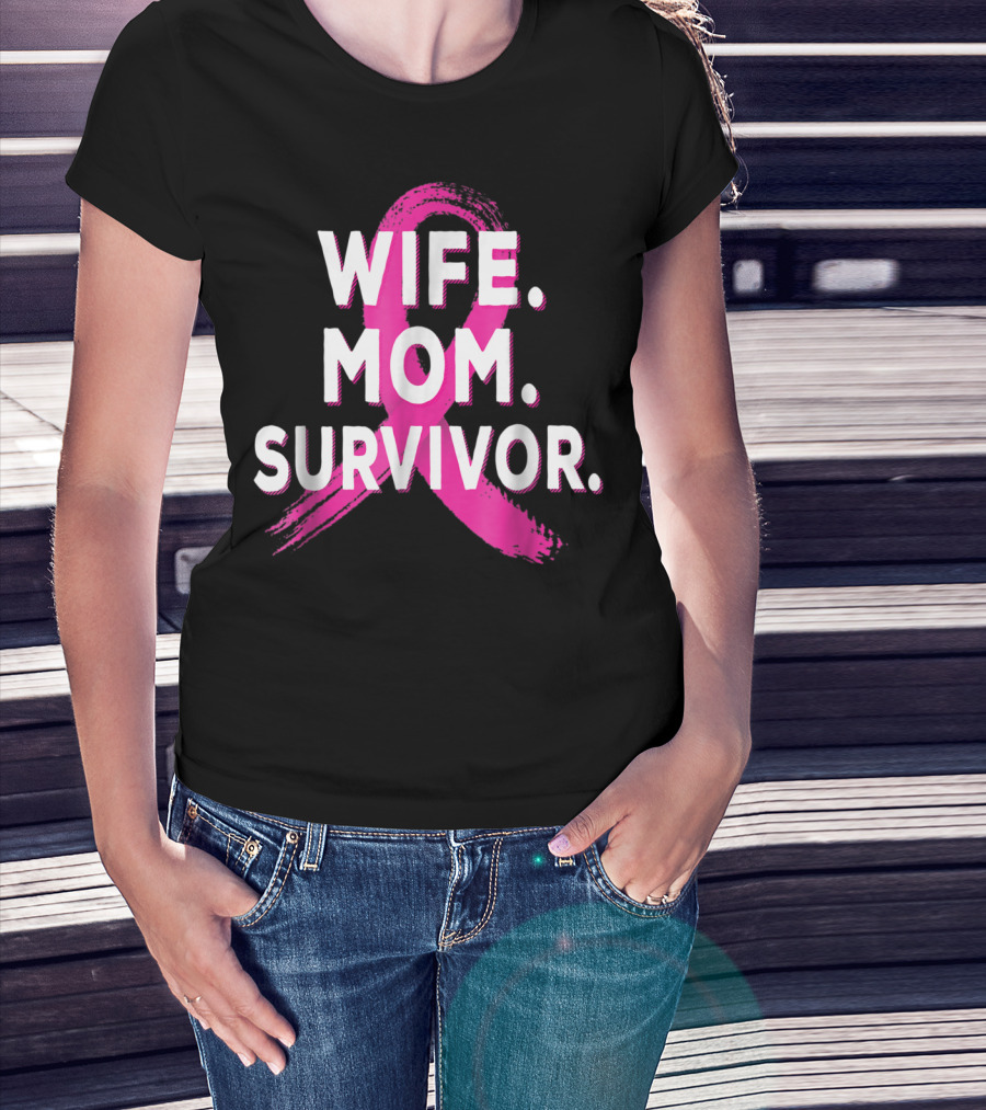 Wife Mom Survivor Breast Cancer Awareness Pink Ribbon T-Shirt
