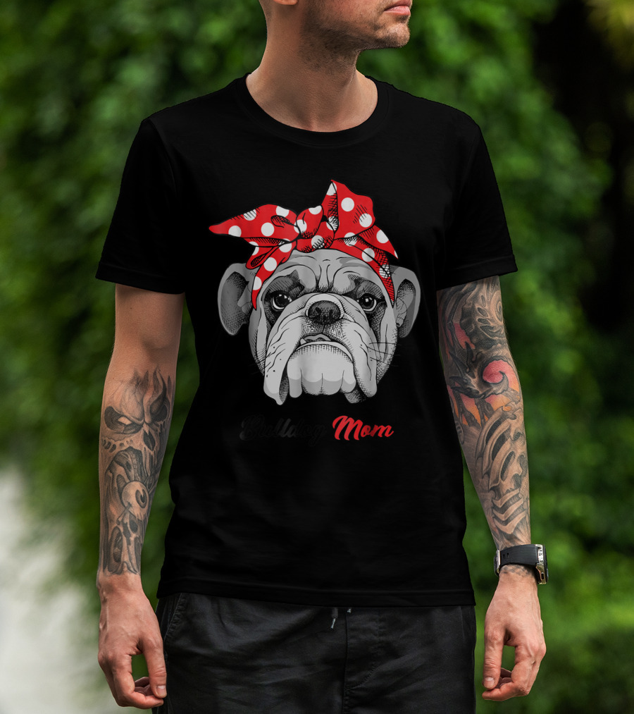 Bulldog Mom Polka Dot Bandana T-Shirt