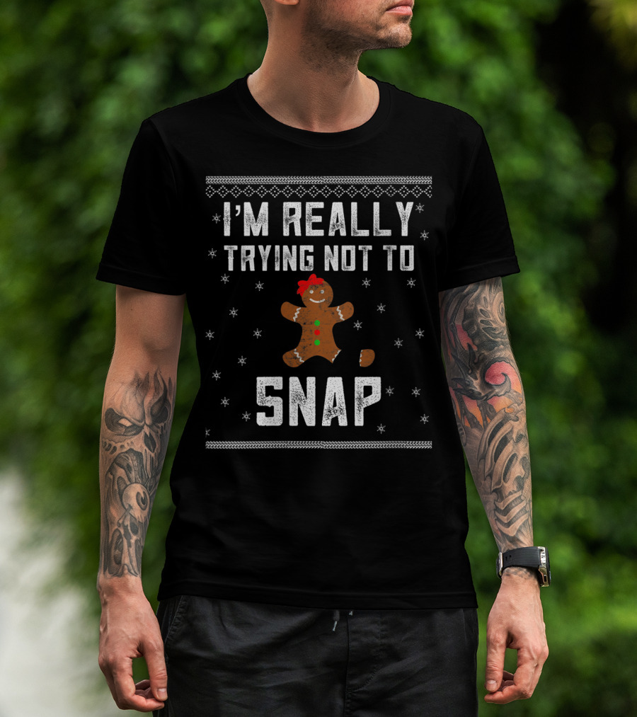 I'm Really Trying Not To Snap Gingerbread Cookie Christmas T-Shirt