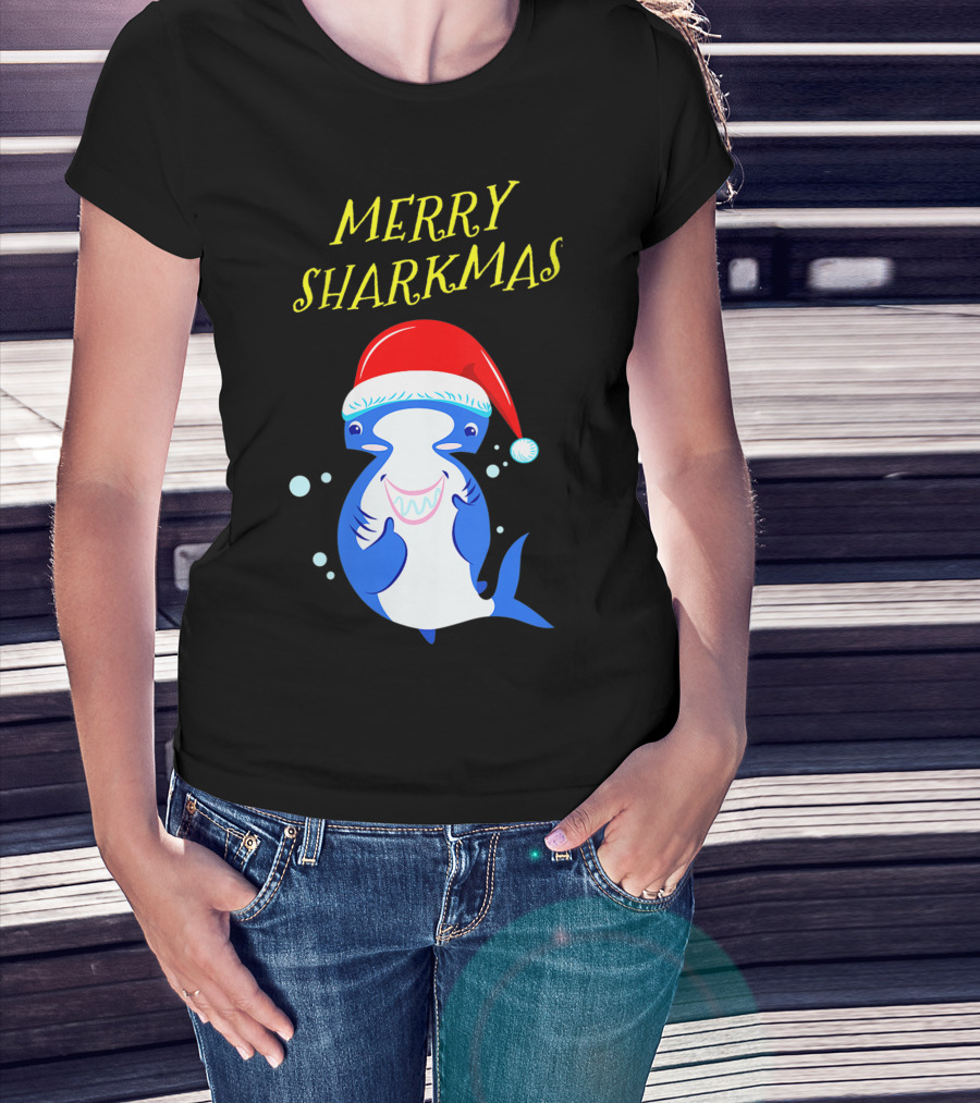 Merry Sharkmas Hammerhead Shark In Santa Hat T-Shirt