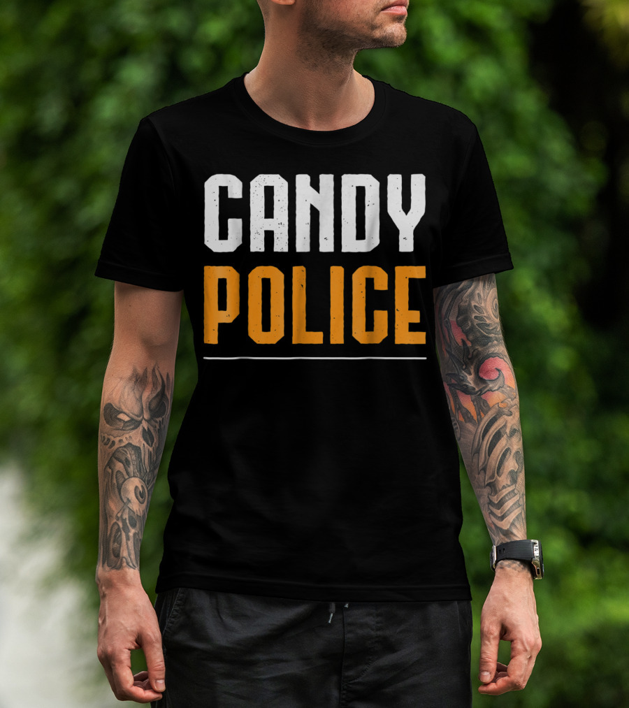 The Candy Police Halloween T-shirt is designed for everyday wear and a consistent fit. Fabric is pre-shrunk ring-spun cotton with durable stitching. See the size chart below for exact measurements.