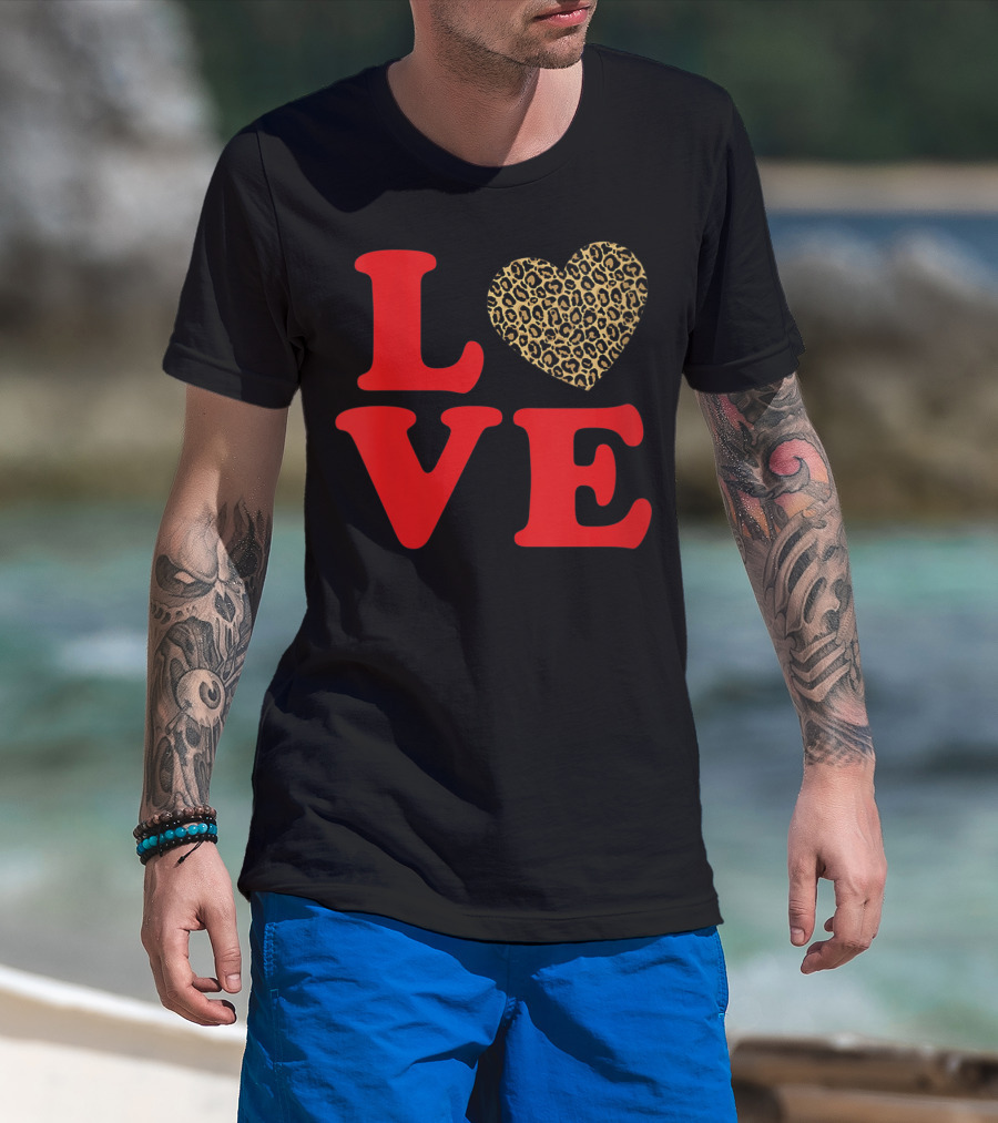 LOVE Leopard Heart Valentines Day Cute T-Shirt