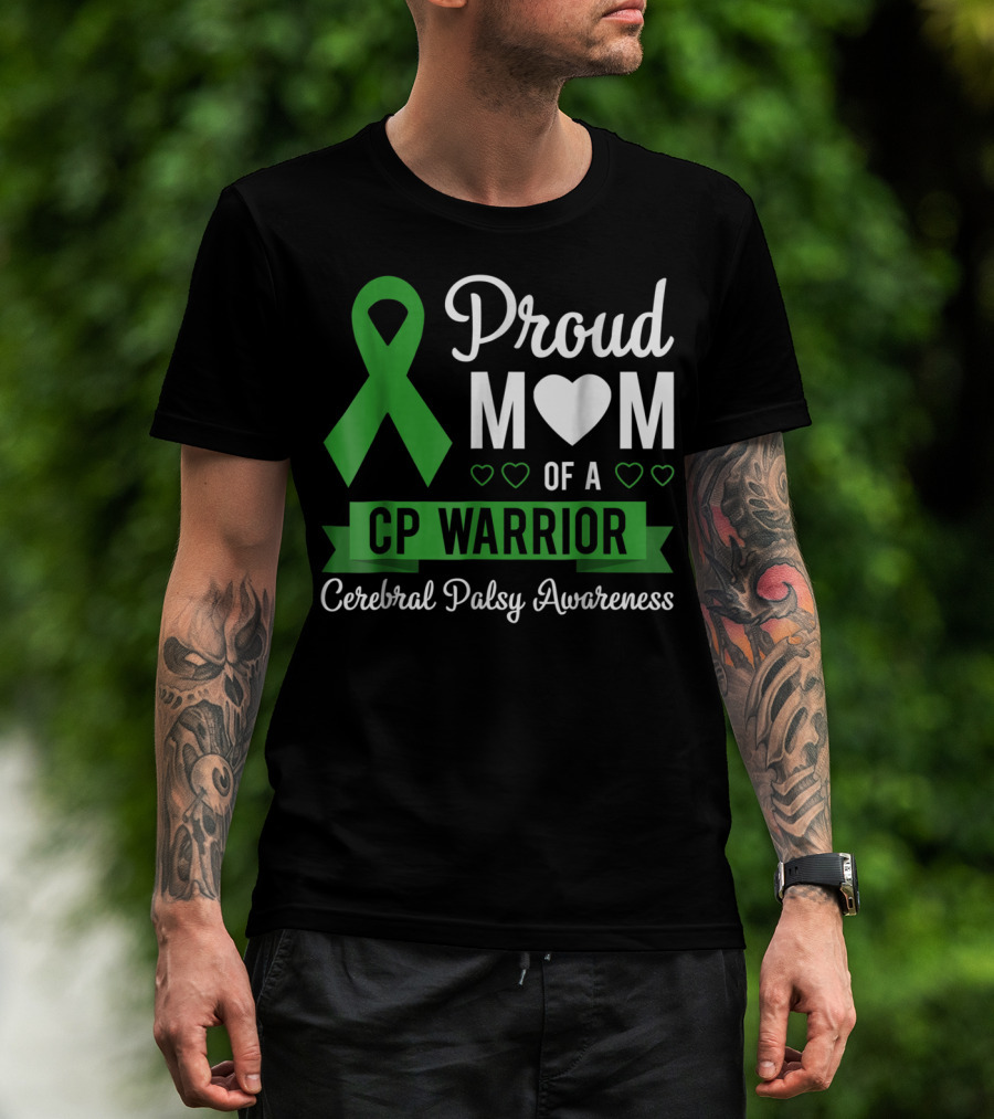 Proud Mom Heart Of A CP Warrior With Green Ribbon For Cerebral Palsy Awareness T-Shirt