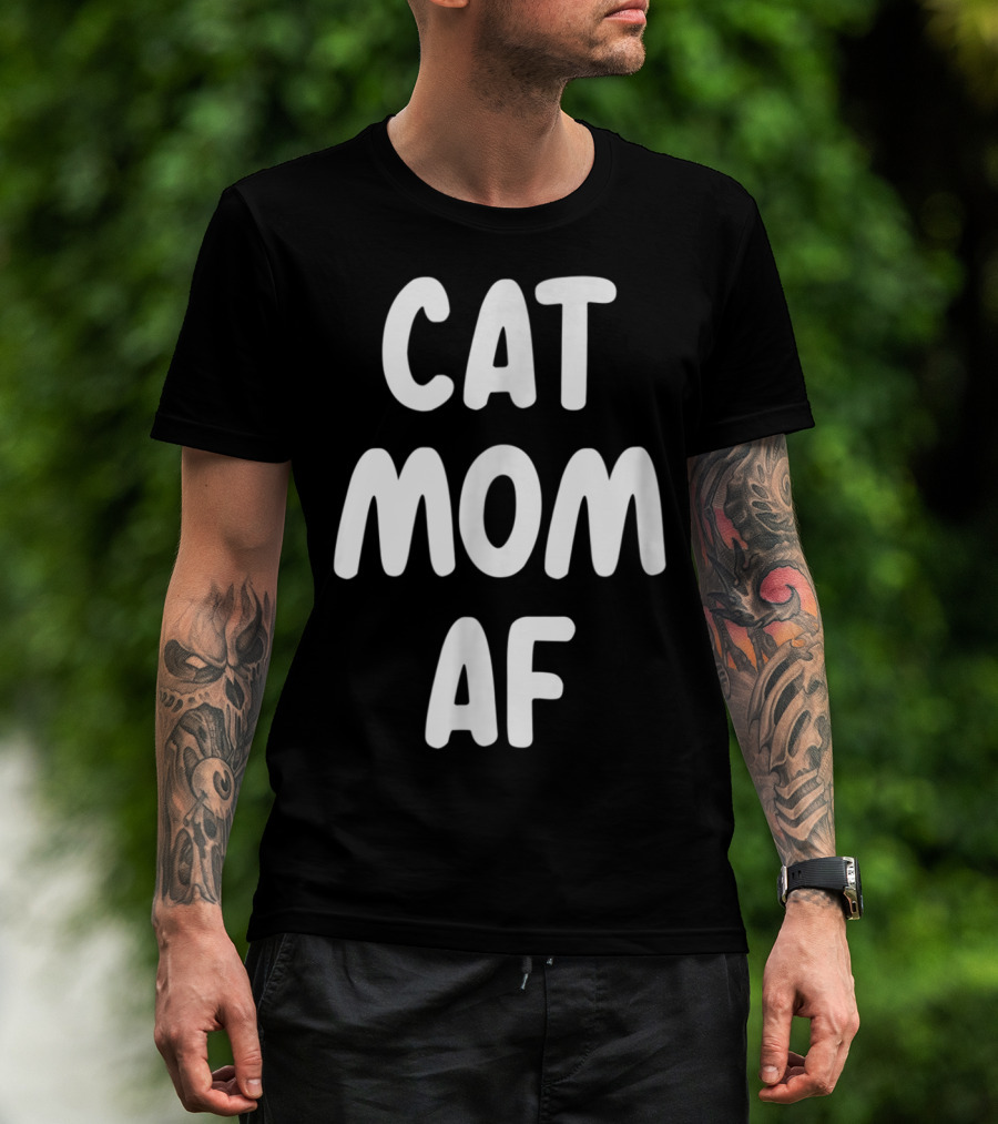 Cat Mom AF Sarcastic Funny Pets Womens T-Shirt