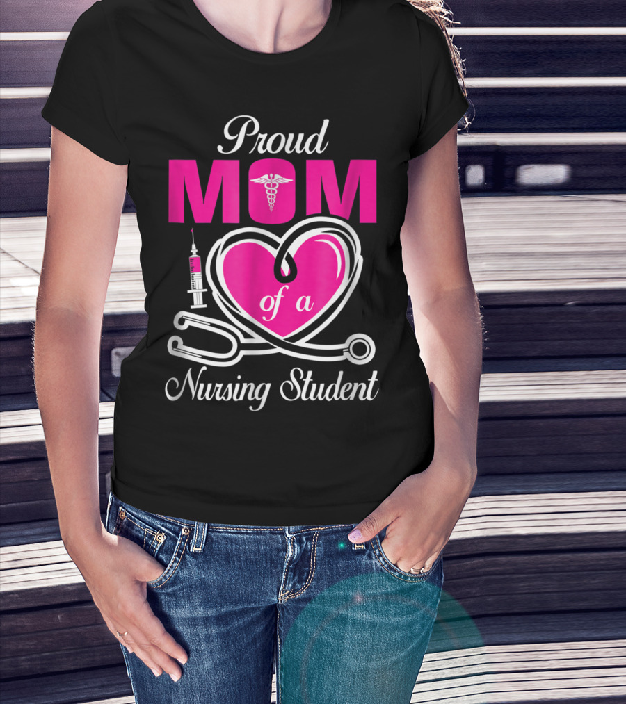Proud Mom Of A Nursing Student Stethoscope Heart Caduceus Syringe T-Shirt