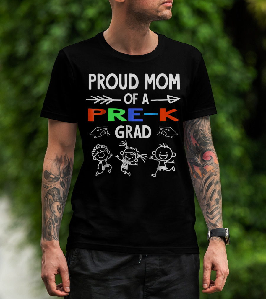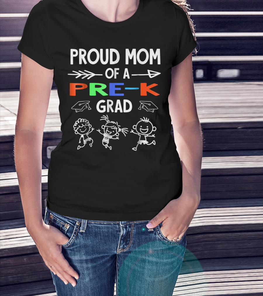 Proud Mom Of A Pre-K Grad With Colorful Letters And Happy Kids T-Shirt
