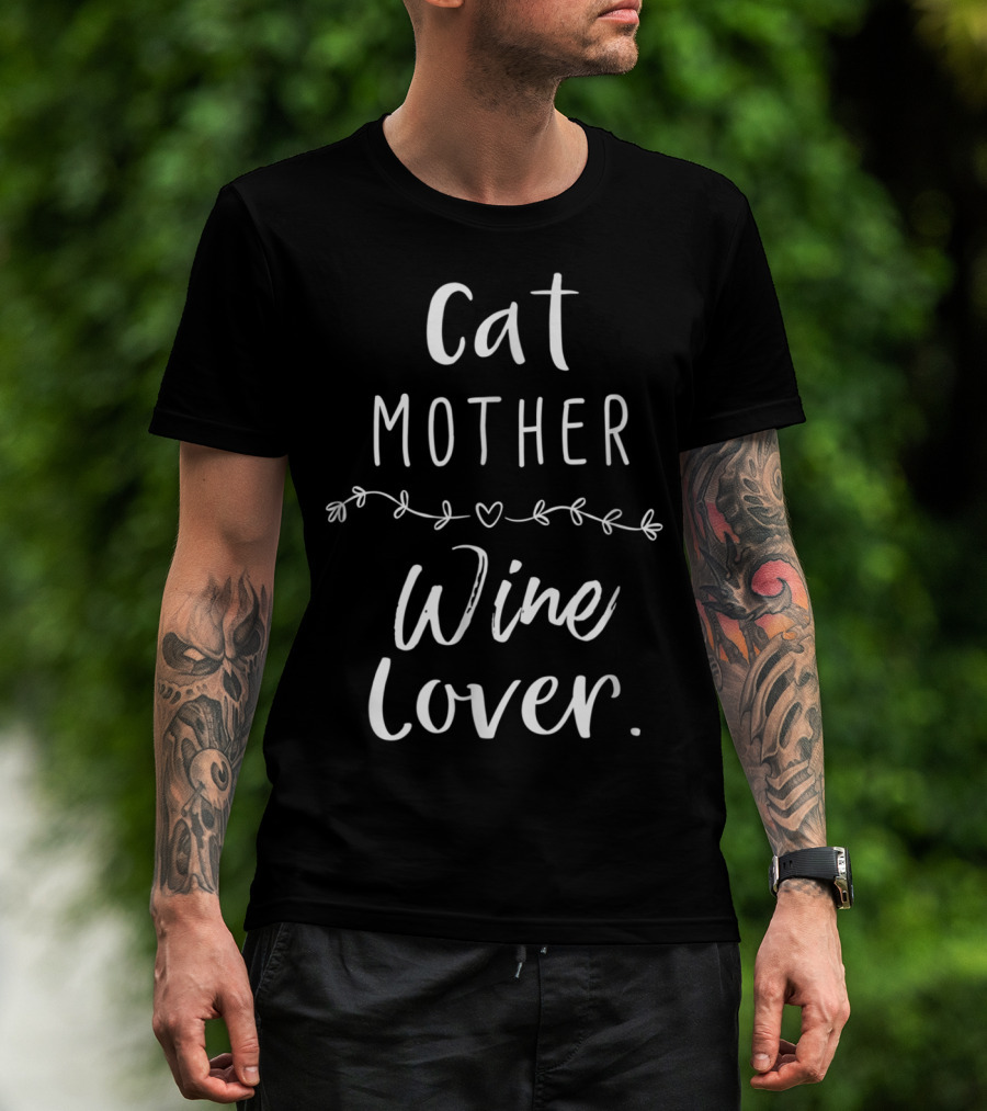 Cat Mother Wine Lover Funny Cat Owner Humor T-Shirt