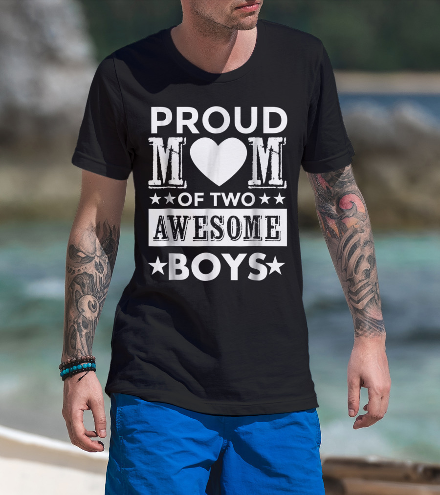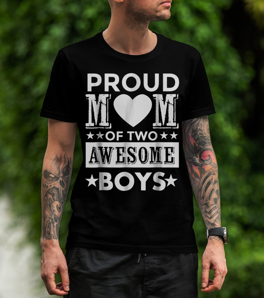 PROUD MOM HEART OF TWO AWESOME STARS BOYS T-Shirt