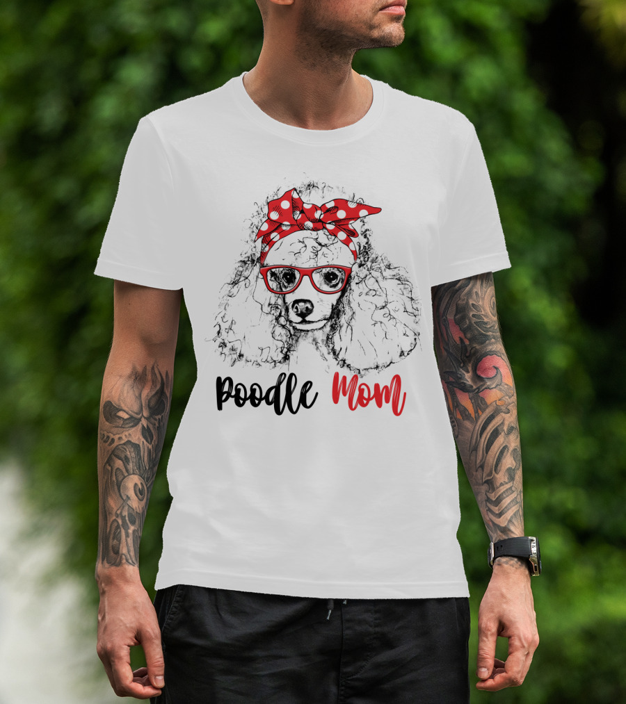 Red Poodle Mom With Bow And Glasses For Women81 T-Shirt