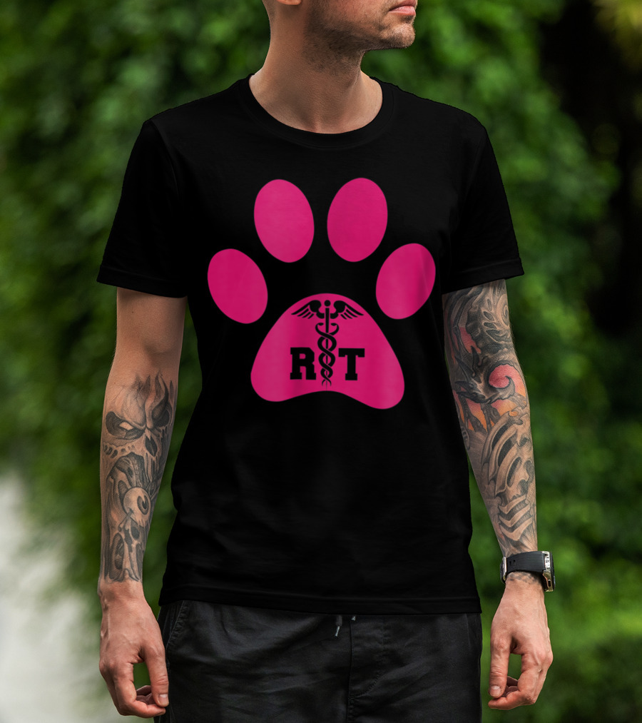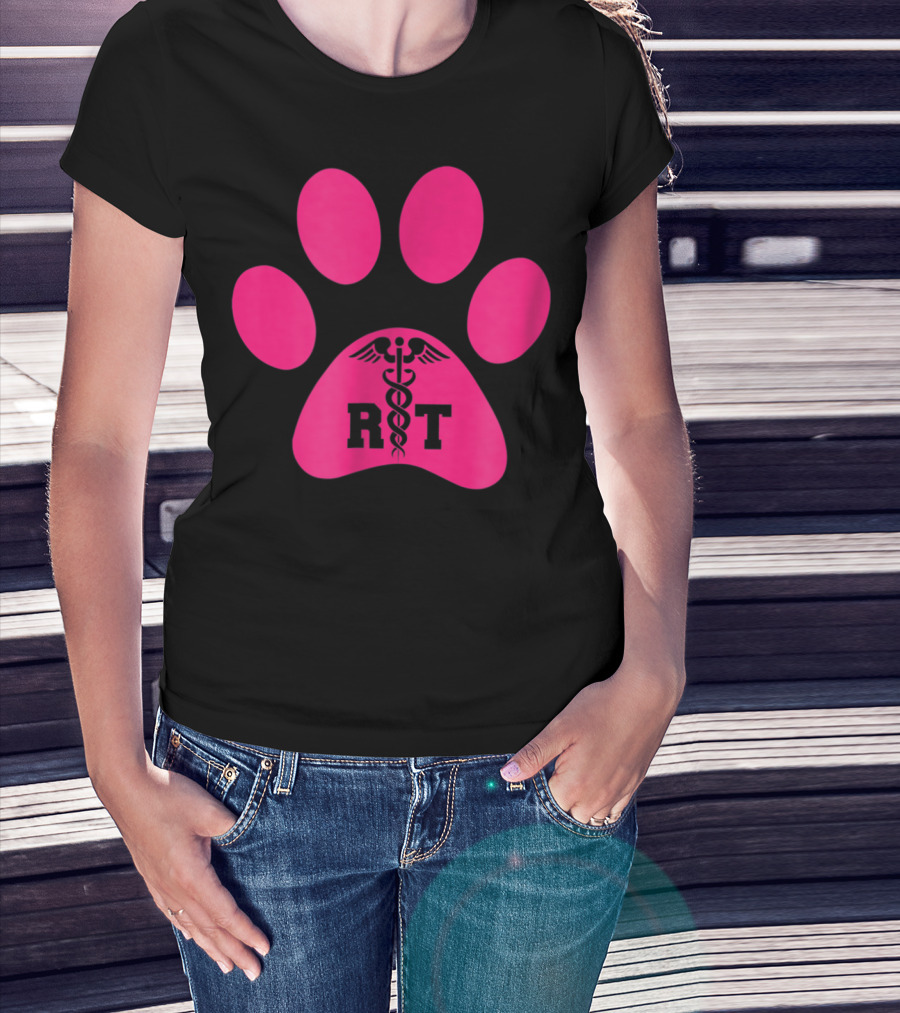 Respiratory Therapy Pink RT Caduceus Dog Paw T-Shirt