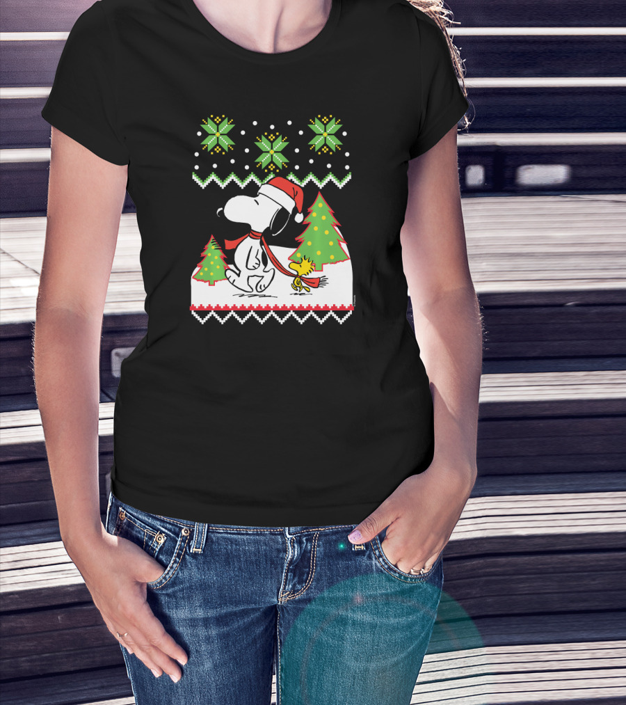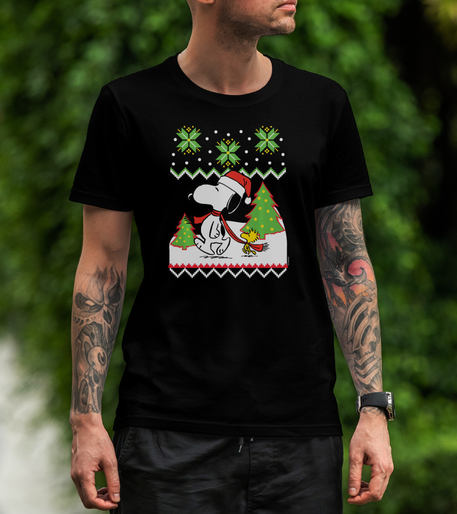 Peanuts Santa Snoopy Woodstock Snow Christmas Trees T-Shirt