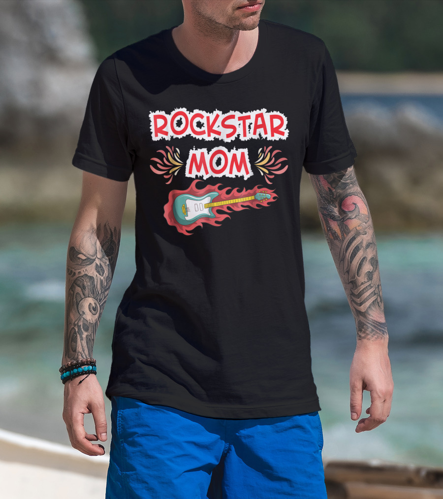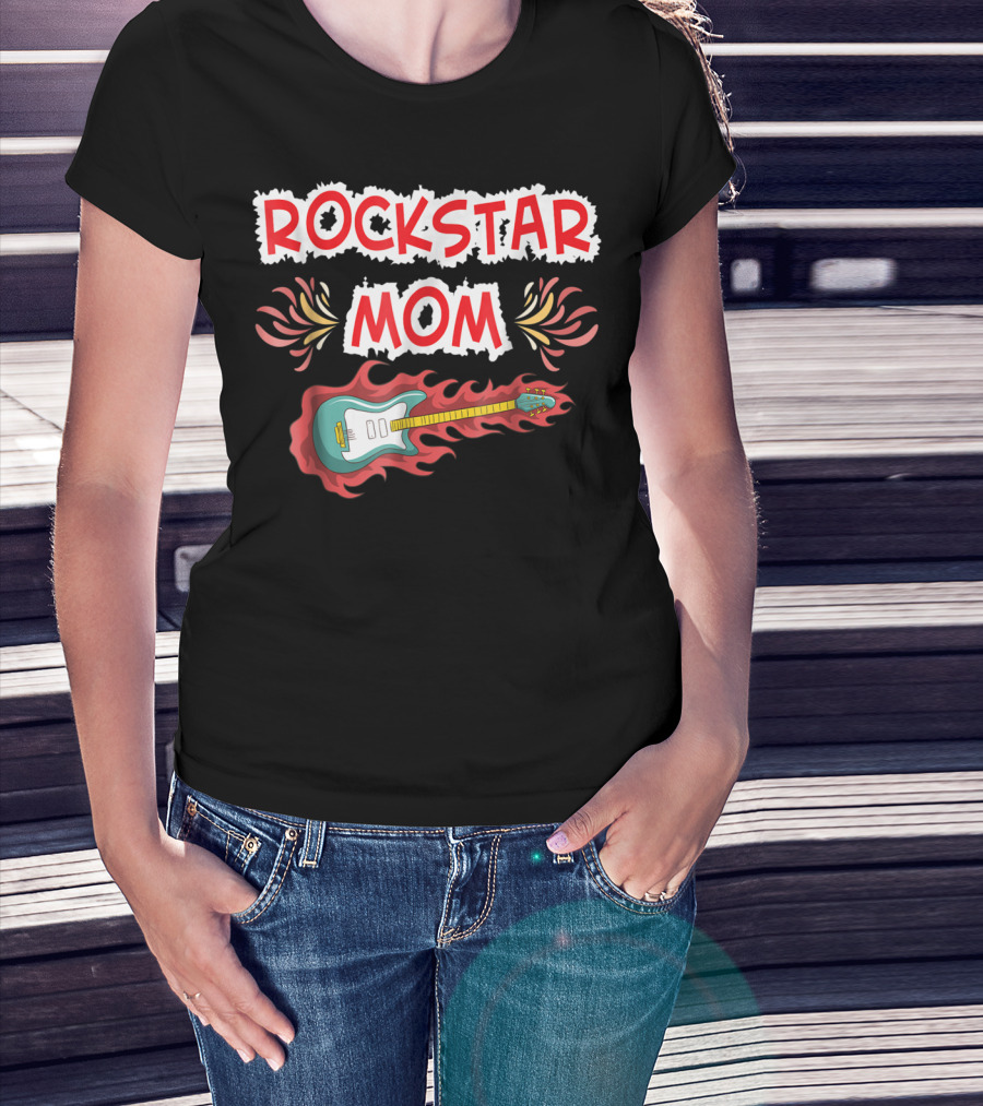 Rockstar Mom Electric Guitar Fire Design Rock Fan T-Shirt