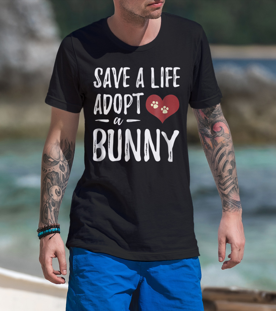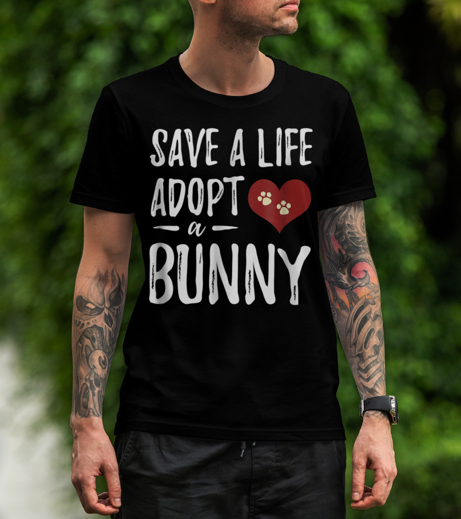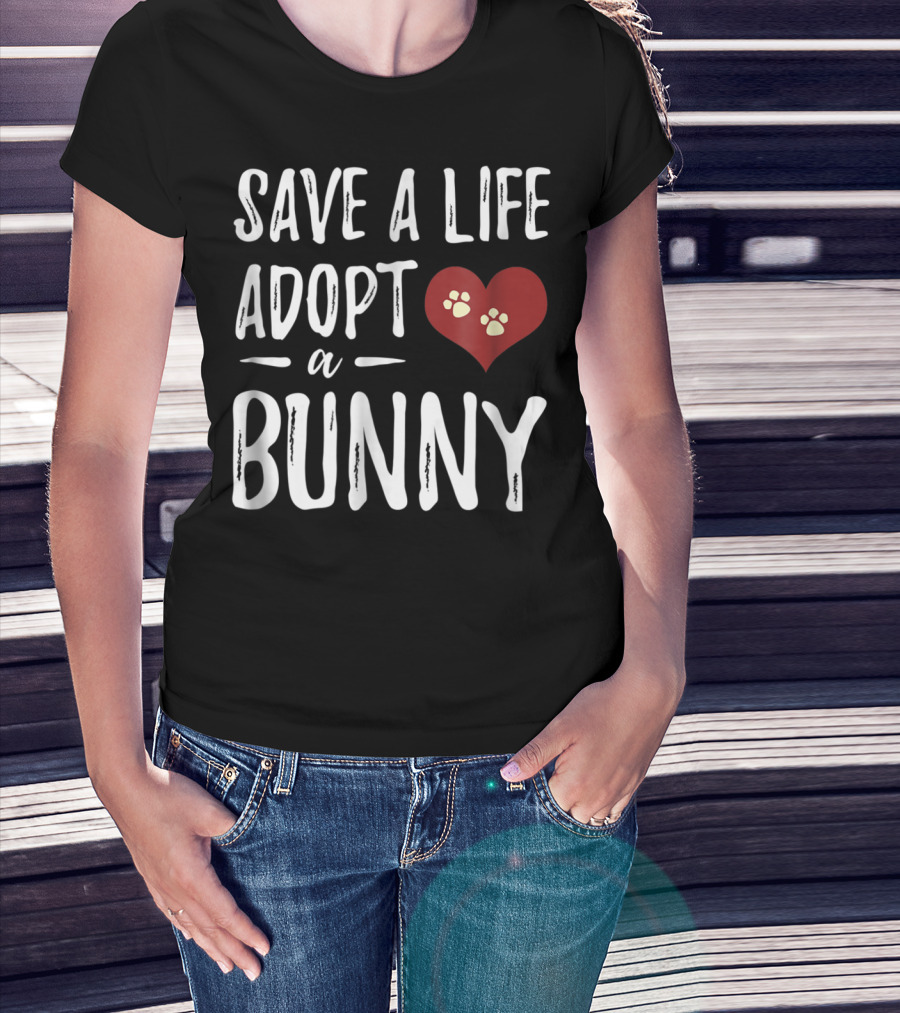 Save A Life Adopt A Bunny Heart Paw Prints T-Shirt