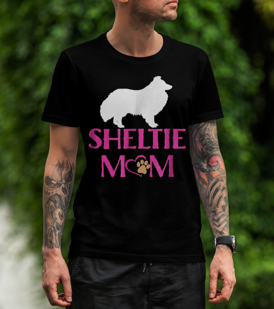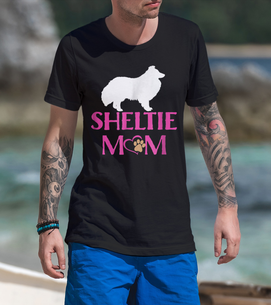 Sheltie Mom With Heart And Paw Prints T-Shirt